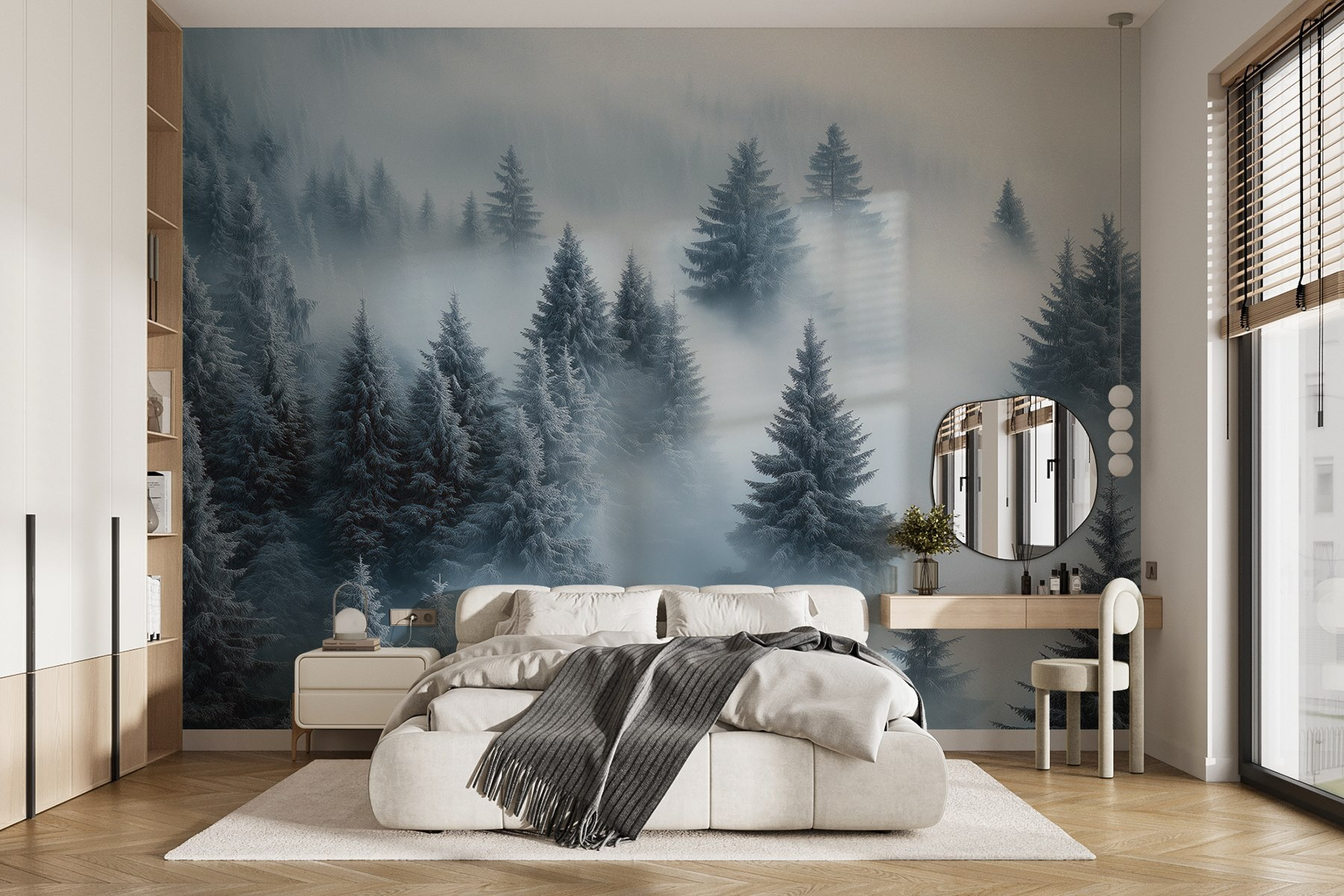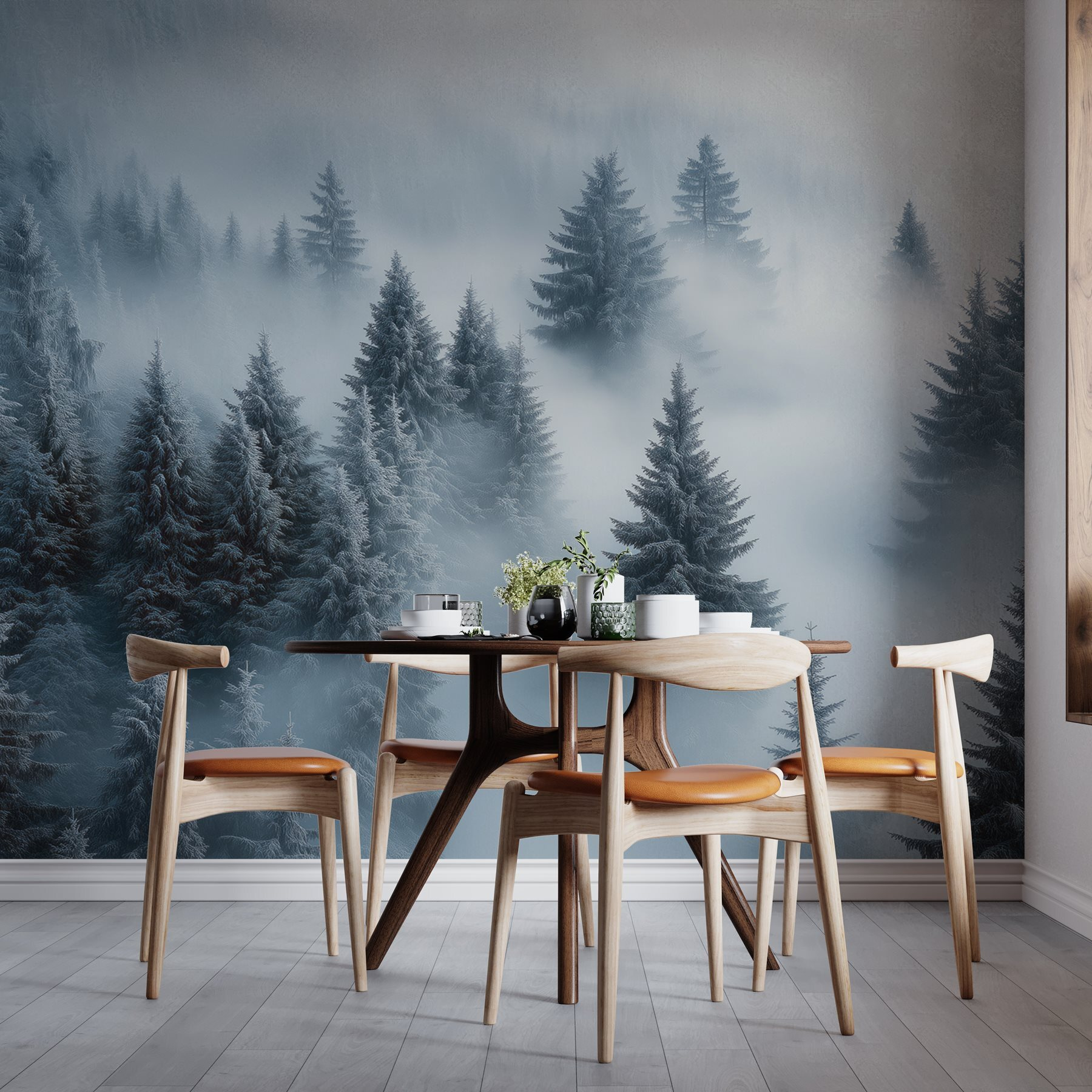 Transforme o seu espaço num país das maravilhas de inverno com este deslumbrante mural de parede com um grupo de árvores de sonho cobertas de neve. É como entrar numa floresta serena, onde cada olhar parece um abraço aconchegante da natureza. Imagine-se a beber a sua bebida quente favorita, embrulhado num cobertor, olhando para os ramos macios e nevados a balançar ligeiramente. Perfeito para uma sala de estar ou um quarto tranquilo, este mural convida à paz e à calma, transportando sem esforço quem entra para um bosque sussurrante. Quem não gostaria de trazer uma fatia dessa magia para dentro de casa?