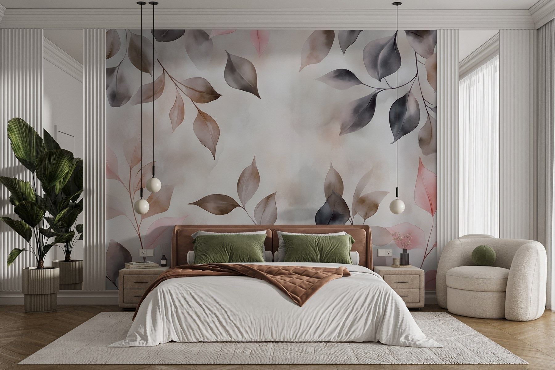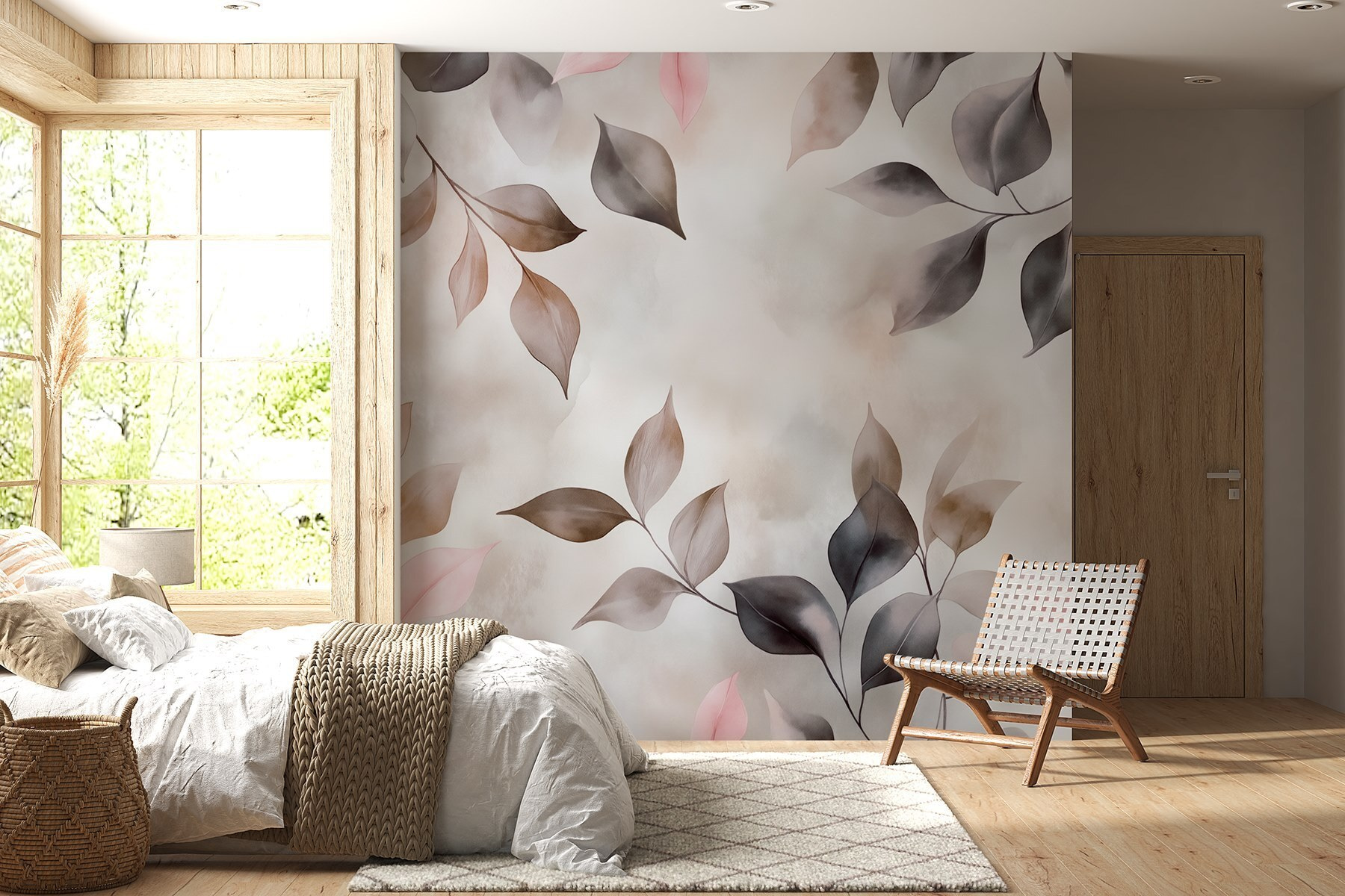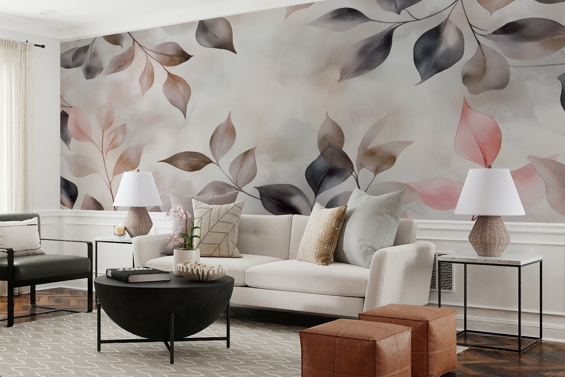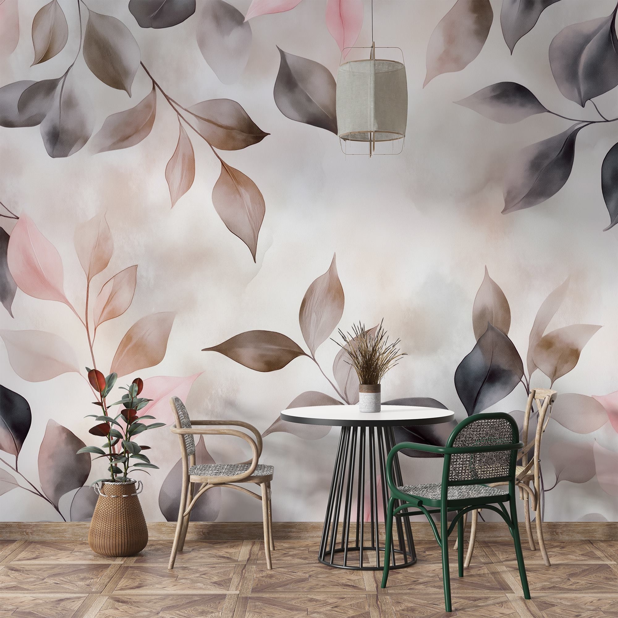 Transforme qualquer divisão num retiro acolhedor com “Delicate Leaves in Soft Hues”. Este mural traz a beleza da natureza para dentro de casa, envolvendo o seu espaço em pastéis suaves e sombras subtis. Imagine-se a beber uma chávena de chá enquanto desfruta da vibração suave que cria. É como ter uma parede de jardim serena – sem o trabalho de jardinagem! O estilo aguarela acrescenta um toque de sonho, perfeito para sonhar acordado ou apenas para descontrair. É também um ótimo início de conversa – os seus convidados podem dar por si a refletir sobre a cor daquelas folhas misteriosas! No geral, é o encanto da natureza na ponta dos seus dedos, pronto para elevar qualquer parede.