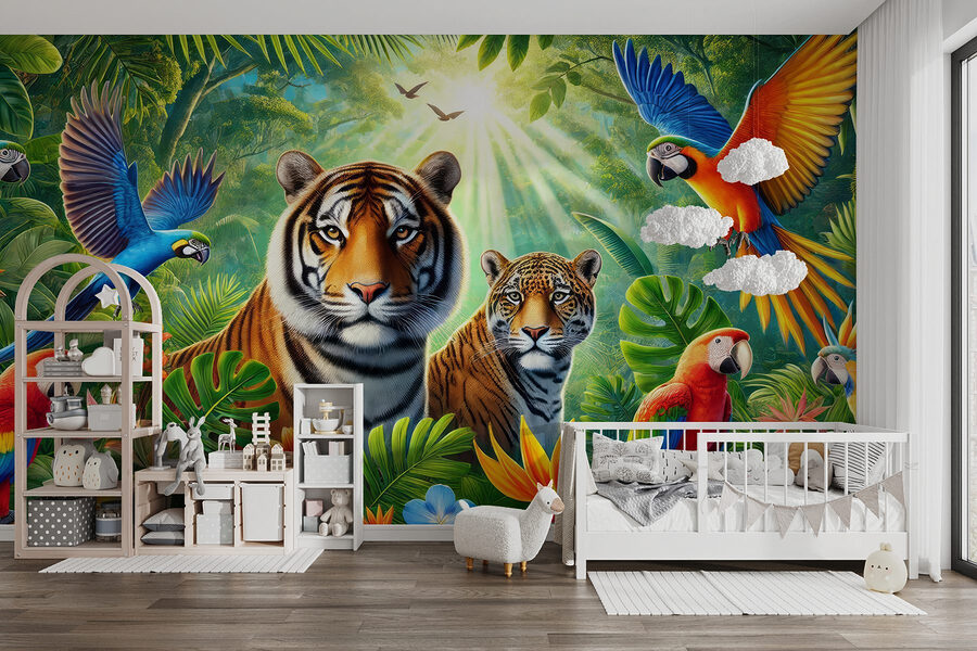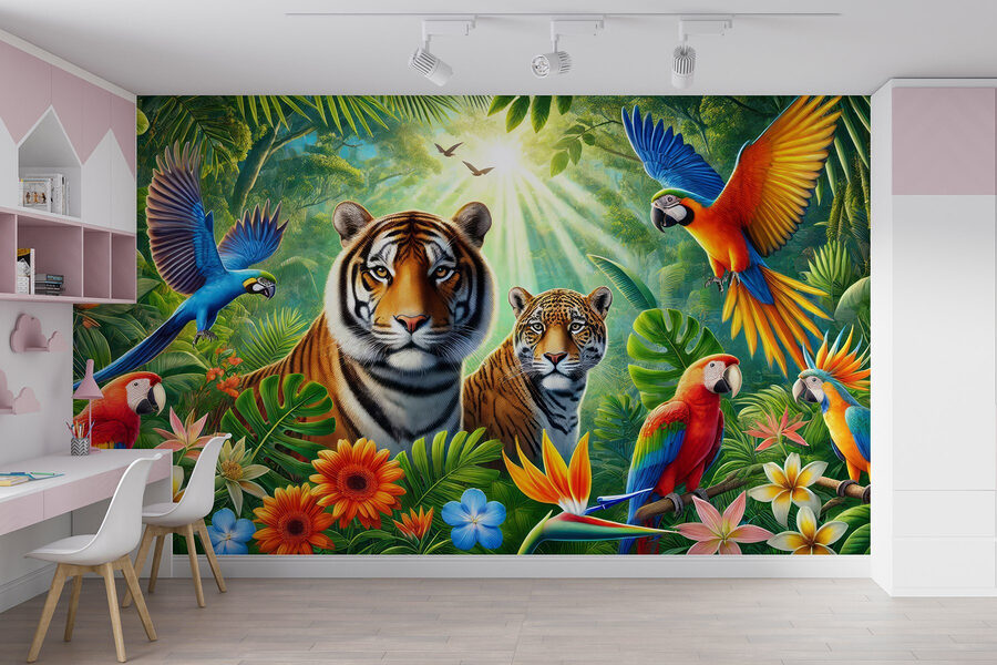 Mergulhe no país das maravilhas da selva com este deslumbrante mural de parede! Imagine chegar a casa e ver uma cena vibrante cheia de vida – os tigres estão a relaxar e os papagaios coloridos estão a dar espetáculo. É como ter uma aventura mesmo na sua sala de estar. Quase consegue ouvir os sons das folhas a farfalhar e dos grasnidos brincalhões. Coloque este mural na sua parede e, de repente, o seu espaço parece um retiro exuberante, pronto para umas férias tropicais a qualquer altura. Perfeito para aqueles que adoram a natureza ou que apenas precisam de uma faísca brilhante na sua casa. A sério, quem é que não sorriria sempre que passasse por aqui? É uma festa para os olhos!
