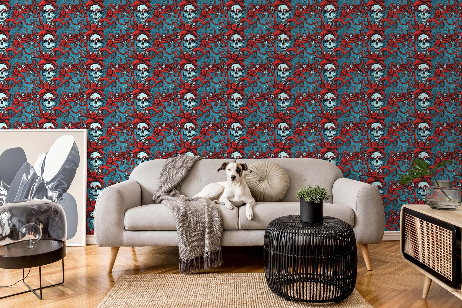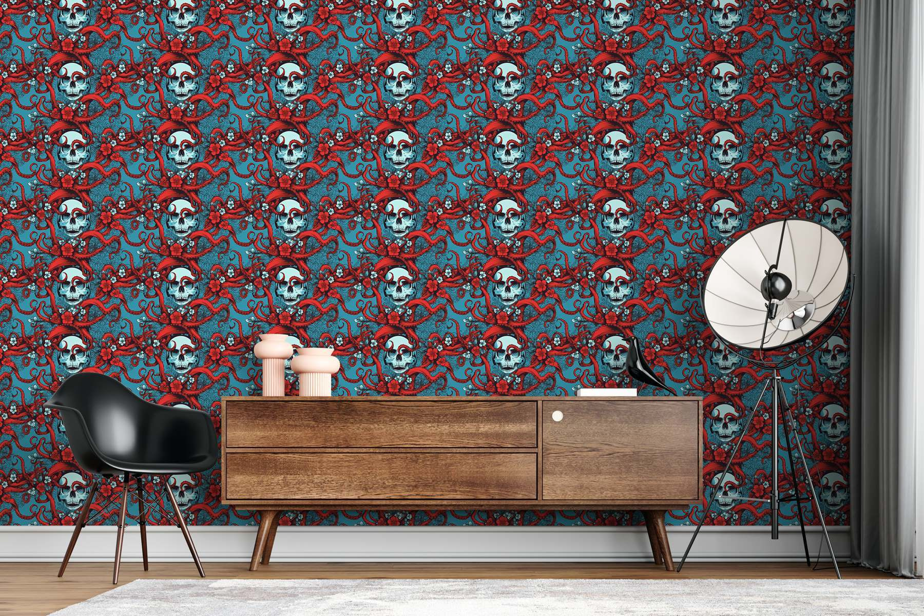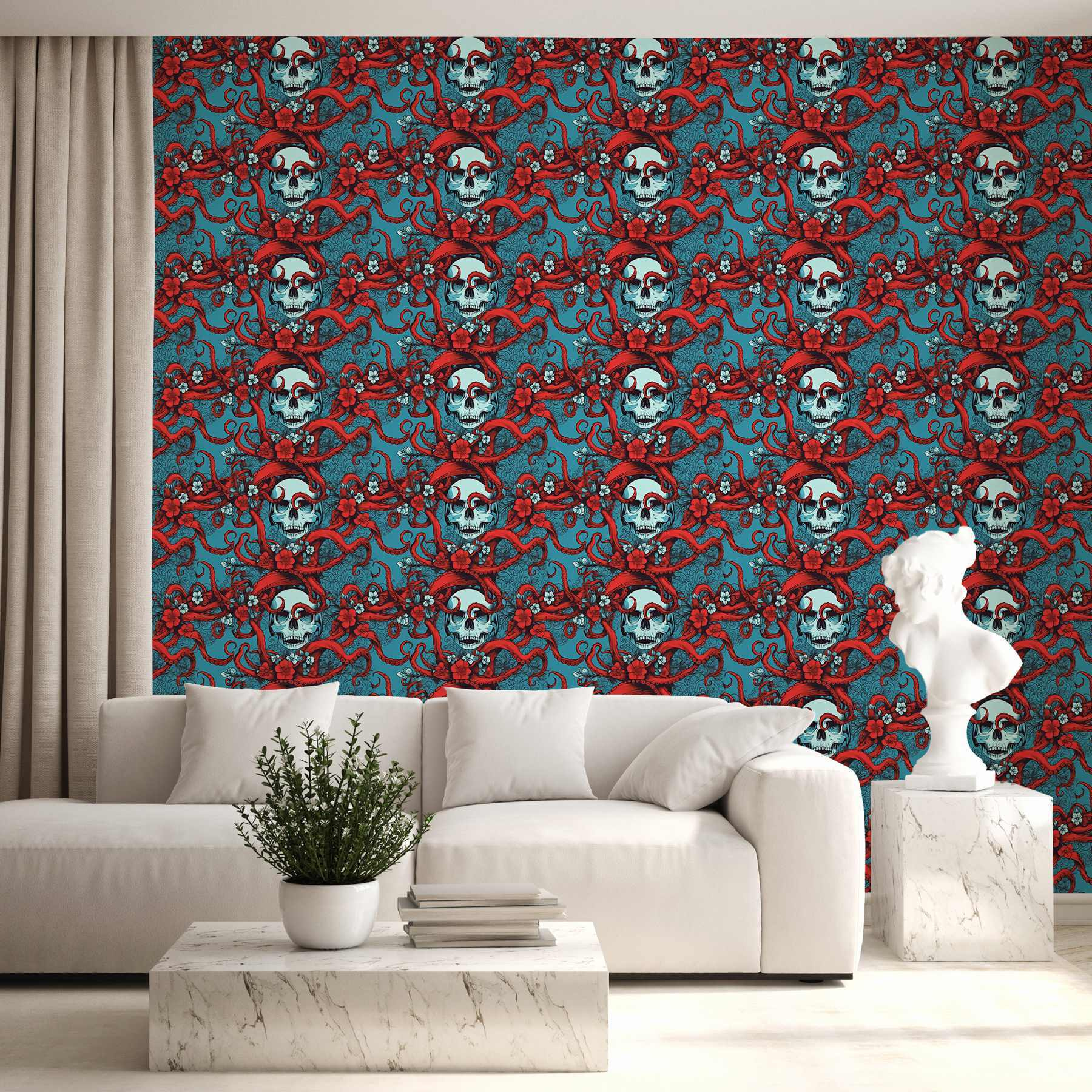 Transforme o seu espaço com o charme peculiar de “Papel de parede Pattern of Skulls in Red Hats”. Este design arrojado é como um alegre início de conversa – quem não gostaria de falar sobre caveiras com chapéus vermelhos? Imagine-o a iluminar uma sala de estar ou a dar carácter a um recanto acolhedor. As cores vibrantes saltam à vista, atraindo todos os olhares, enquanto o toque divertido dos elementos clássicos o mantém fresco. É perfeito para aqueles que gostam de misturar elegância com um pouco de ousadia. Quer se trate de uma noite de jogo ou apenas de relaxamento, este mural promete despertar sorrisos e talvez um pouco de riso. É uma decoração com personalidade!