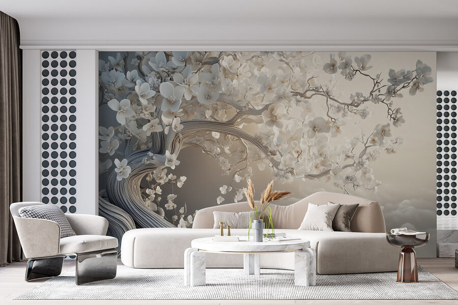 1 avaliação de Papel de parede Árvore branca com flores brancas