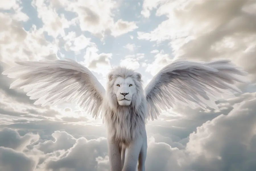 Transforme o seu espaço com este deslumbrante mural, “Leão com asas no céu”. Imagine entrar numa sala que parece uma cena de um sonho – este leão majestoso a voar por entre nuvens fofas é o centro das atenções. Esqueça as paredes aborrecidas; esta peça acrescenta um toque de elegância e capricho. É como ter um anjo da guarda, mas com muito mais personalidade!