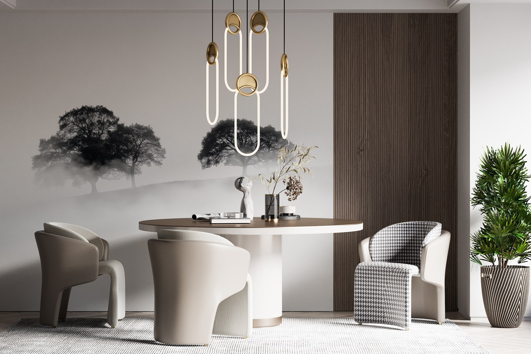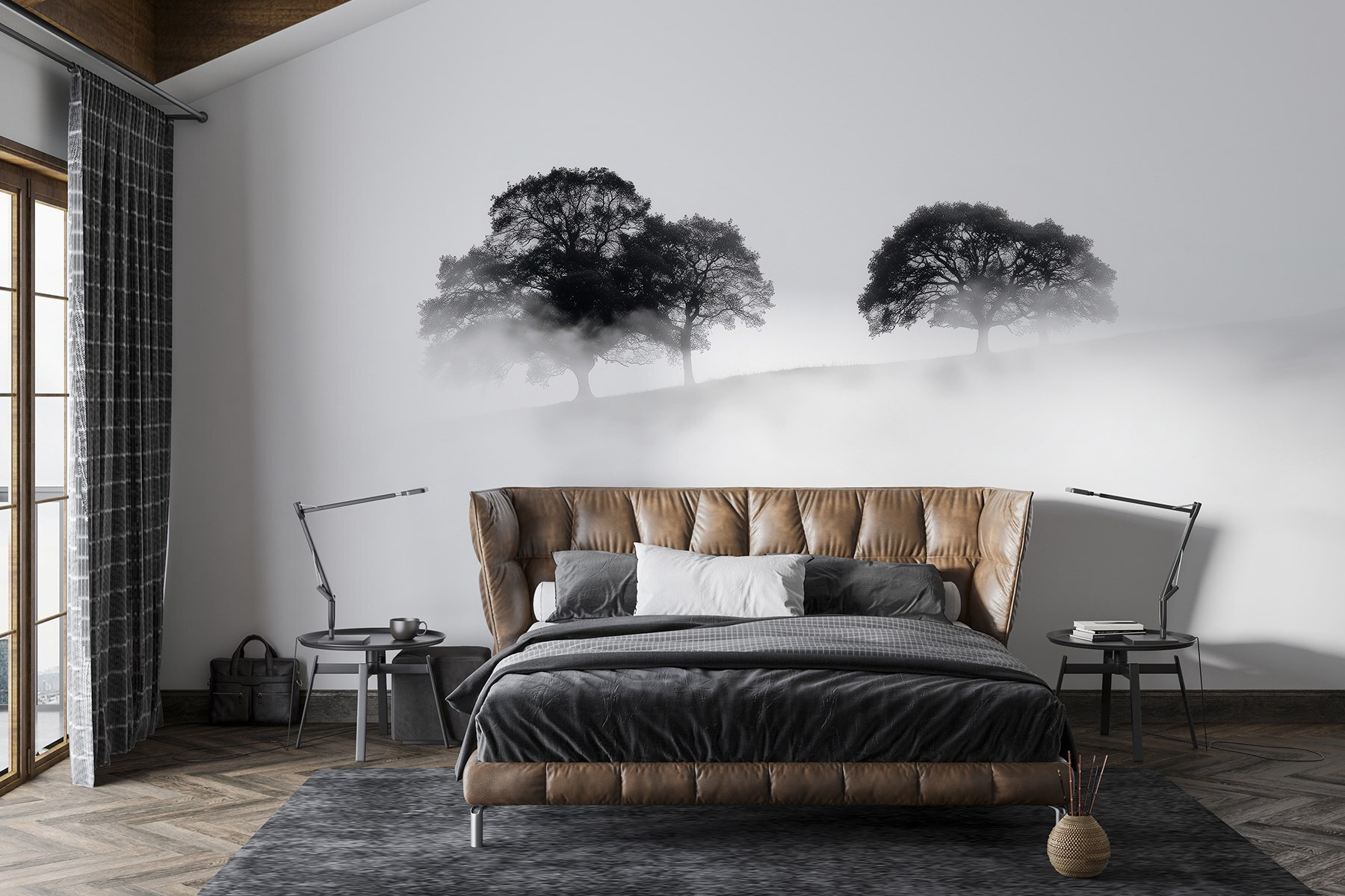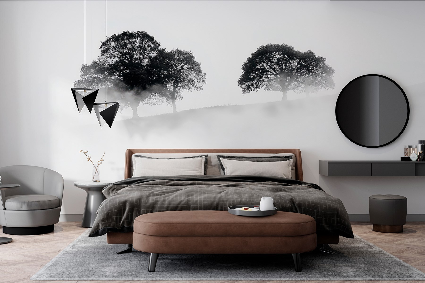 Transforme qualquer divisão numa fuga serena com este mural encantador de árvores envoltas em nevoeiro. Imagine-se a entrar no seu espaço e a sentir imediatamente a calma que o envolve, como uma névoa suave a envolver os seus ombros numa manhã calma. A elegância discreta das silhuetas acrescenta um toque de mistério, perfeito para estimular a conversa ou a contemplação.