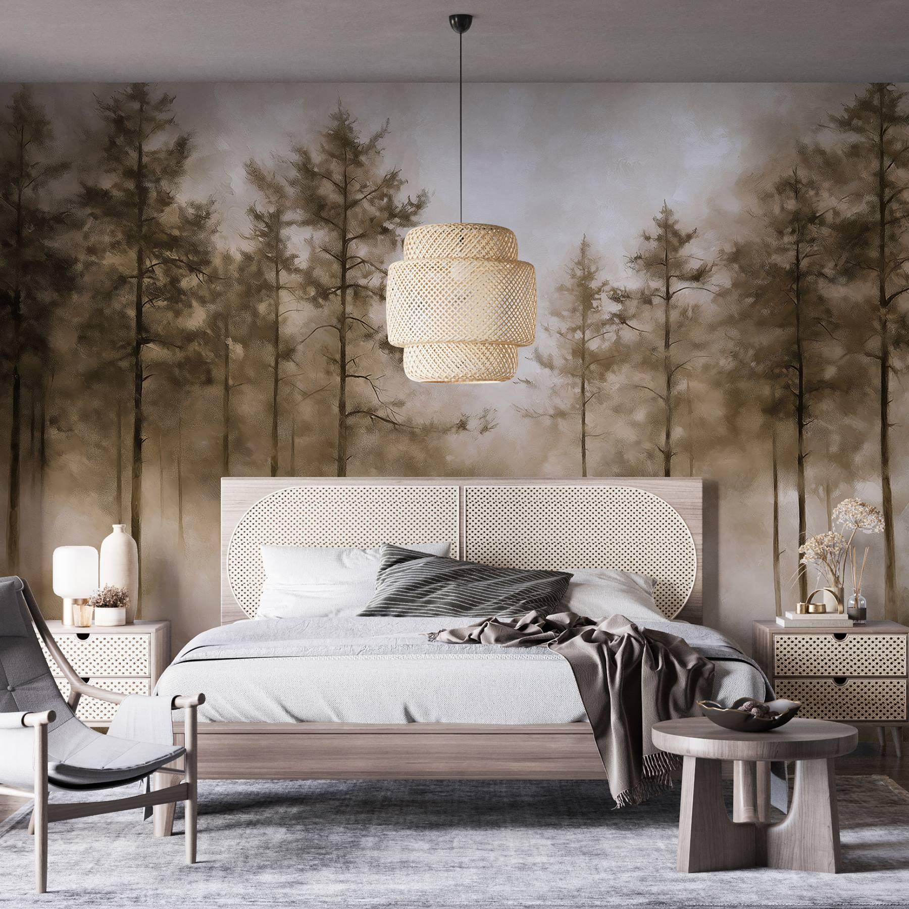 Entre numa fuga de sonho com o mural “Foggy Forest with Trees”. É como trazer um pedaço acolhedor da natureza diretamente para a sua sala de estar – não são necessárias botas de caminhada! Imagine-se a acordar, a beber café e a sentir-se rodeado por pinheiros sussurrantes e um nevoeiro suave. Os tons suaves e discretos criam esta calma perfeita, quase como um dia de chuva favorito. Os convidados podem até pensar que tem um lado selvagem secreto. Imagine-os a perderem-se na vibração serena, e talvez até a partilharem os seus próprios contos sobre a natureza. Este mural transforma qualquer espaço com um toque de magia e uma pitada de capricho – perfeito para quem procura uma lufada de ar fresco dentro de casa!
