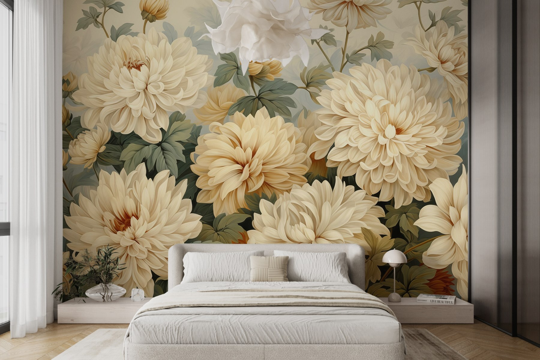 Quer seja num recanto acolhedor ou numa sala de estar espaçosa, este mural acrescenta um toque de charme sem chamar a atenção. É como um abraço floral para as suas paredes, convidando ao calor e ao conforto. Cada olhar dá a sensação de caminhar por um jardim tranquilo, onde as preocupações parecem desaparecer. E quem é que não quereria isso?