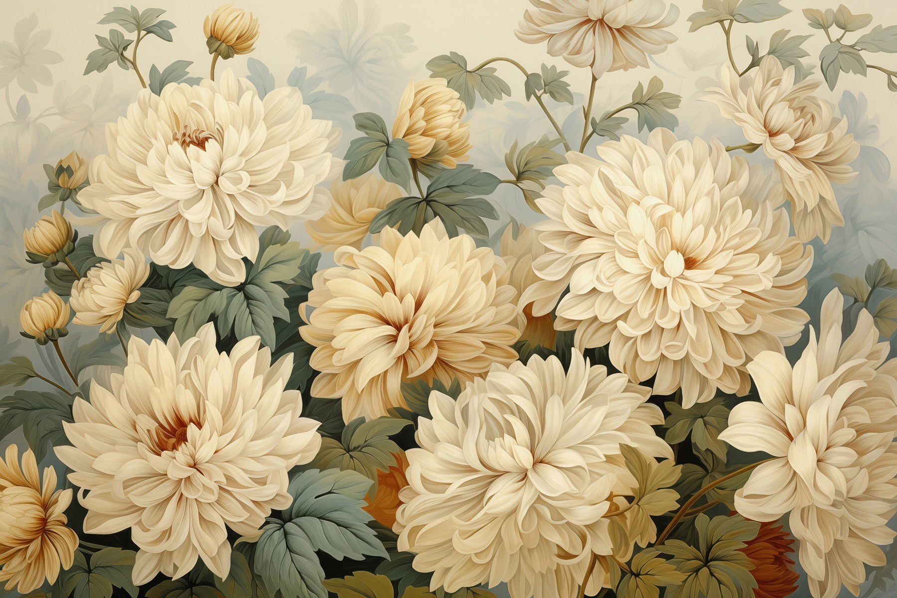 Transformando uma parede num jardim sereno, o mural “Elegant Blooms in Soft Hues” traz uma vibração totalmente nova a qualquer divisão. Imagine entrar no seu espaço e ser recebido por flores suaves que parecem sussurrar palavras doces. As cores suaves criam um cenário calmante, perfeito para beber chá e descontrair após um longo dia.