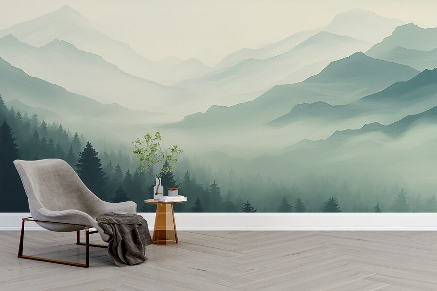 Transforme o seu espaço com este mural de parede encantador com uma paisagem de montanha enevoada beijada por árvores suaves. Imagine acordar com os tons calmos das montanhas, como se o sussurro da natureza saudasse cada dia. A névoa suave envolve os picos, criando um cenário quase de sonho – perfeito para manhãs acolhedoras ou noites tranquilas com uma chávena de chá.