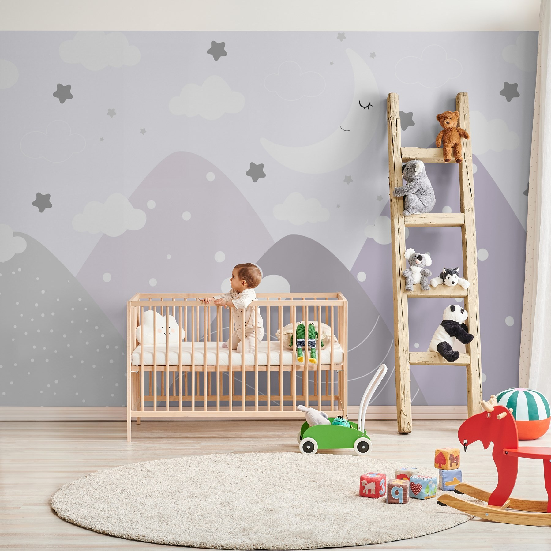 Transforme qualquer espaço com este mural de sonho com uma lua e nuvens no céu. Perfeito para os mais pequenos, cria uma atmosfera caprichosa que é acolhedora mas divertida. Imagine um quarto de criança onde a hora de dormir se torna uma aventura, rodeado por montanhas suaves e estrelas cintilantes. As cores suaves acalmam enquanto estimulam a imaginação – perfeito para sonhadores e observadores de estrelas. Quer seja a hora da história ou da sesta, este mural envolve o quarto em vibrações calmas, fazendo com que cada momento seja acolhedor e especial. Não se surpreenda se toda a família começar a ansiar pela hora de dormir!