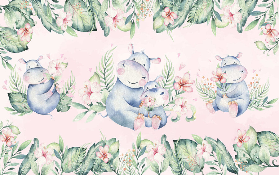 Transforme o seu espaço com este mural de parede encantador que exibe hipopótamos de aguarela encantadores aninhados entre flores vibrantes. Imagine entrar numa sala onde estas adoráveis criaturas parecem rir e abraçar a beleza da natureza, iluminando instantaneamente o seu humor. Perfeito para quartos de crianças ou áreas lúdicas, este mural acrescenta uma vibração alegre que sussurra alegria. O fundo cor-de-rosa calmante faz com que se sinta quente e acolhedor. É como ter um pequeno pedaço da savana mesmo em sua casa, onde cada olhar traz um sorriso – quem não quereria isso? Além disso, pode inspirar alguns momentos divertidos de contar histórias!