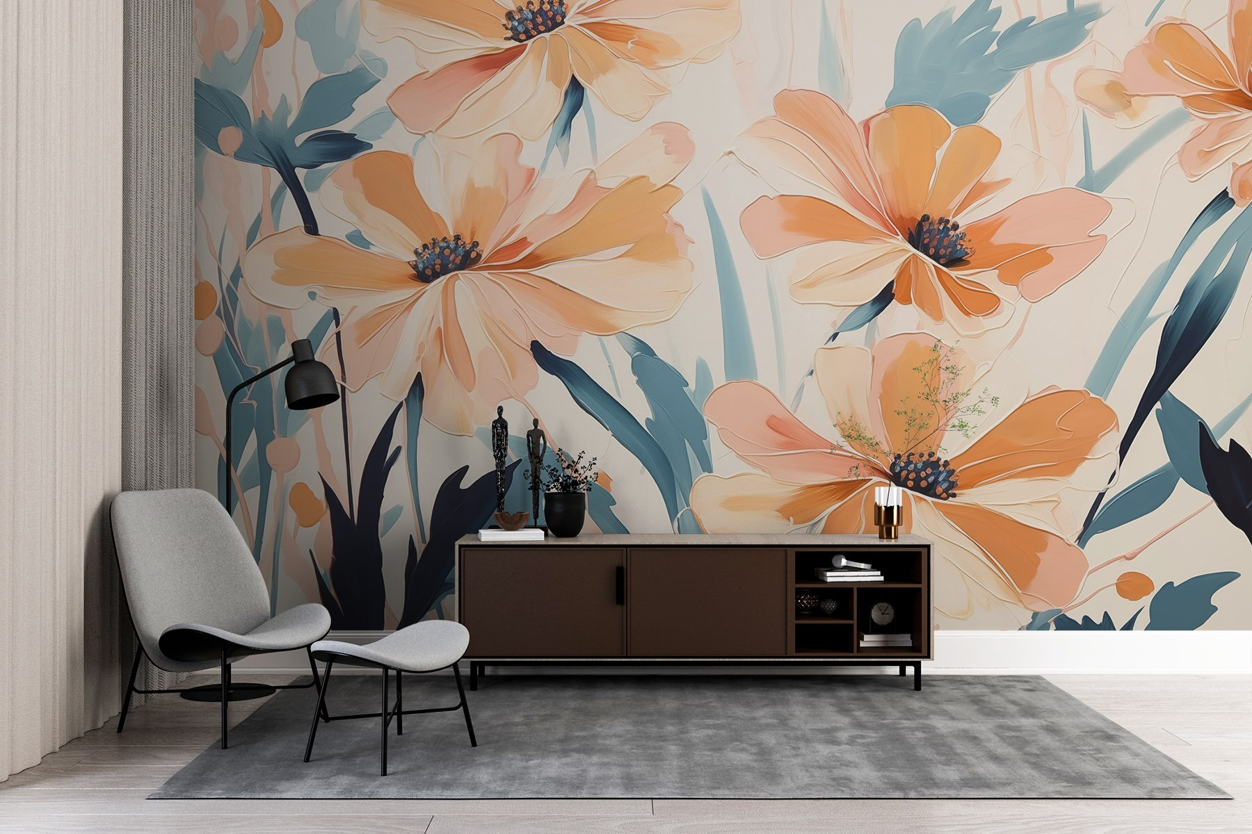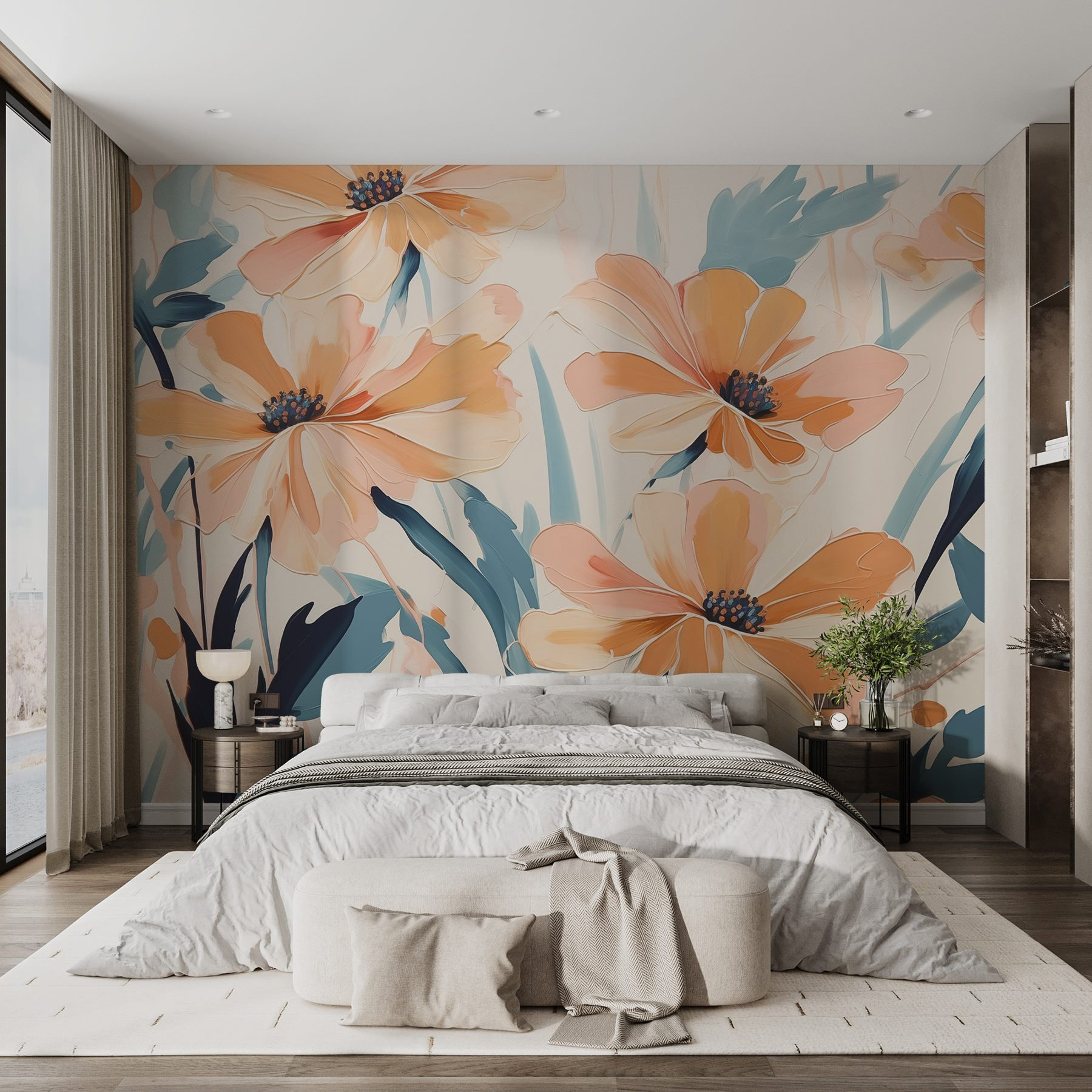 Imagine entrar numa sala salpicada de flores vibrantes que parecem dançar diretamente da parede. Este mural, com as suas flores em aguarela em tons suaves de pêssego e azul-petróleo, transforma qualquer espaço num sereno retiro de jardim. É como fazer um piquenique num campo de flores – sem as formigas. Imagine-se a bebericar o seu café matinal e aquelas pétalas a sussurrarem-lhe palavras doces. É acolhedor e convidativo, perfeito para salas de estar, quartos ou qualquer sítio que precise de um toque de encanto da natureza. Basta um olhar e parece que a primavera está sempre na estação!