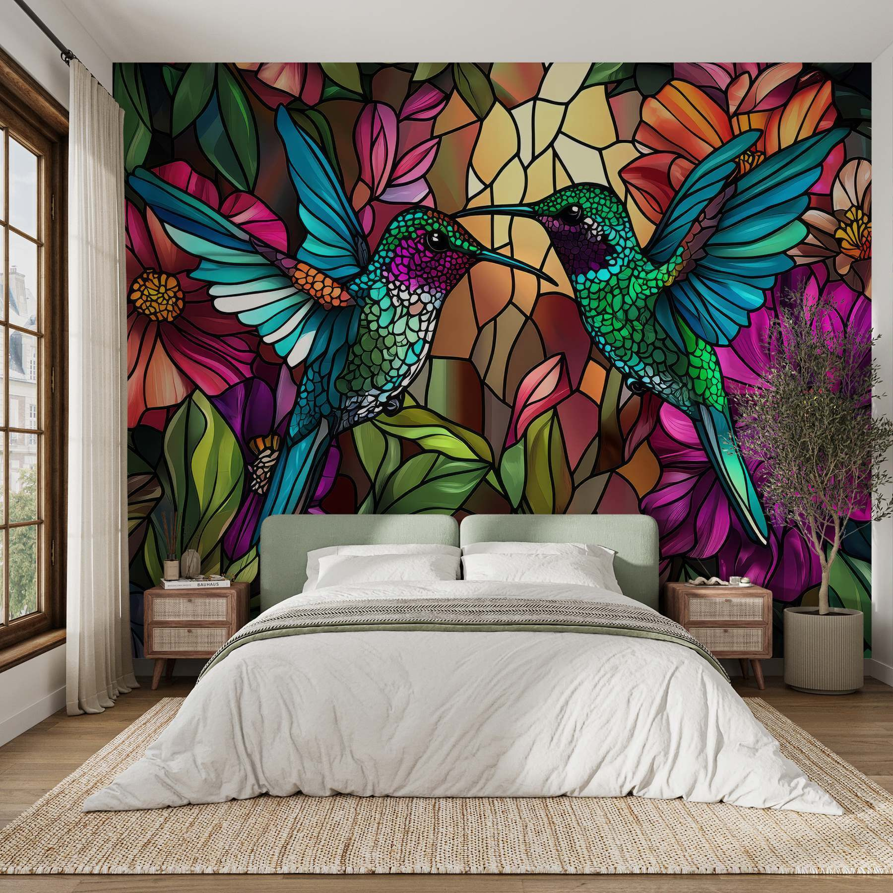 Transforme qualquer divisão num oásis vibrante com este espetacular mural “Vitral com pássaros coloridos”. Imagine: dois colibris deslumbrantes em pleno voo, rodeados por uma explosão de flores arrojadas. É como trazer um pedaço da natureza para dentro de casa – sem a confusão do pólen! As cores sobressaem de forma tão bela que podem fazê-lo sentir-se como se estivesse a beber um cocktail num pátio ensolarado. Imagine-se a acordar e a ser recebido por um cenário tão animado – é um estimulante do humor! Perfeito para os amantes da natureza ou para qualquer pessoa que queira injetar uma pitada de alegria no seu espaço. Voilà, charme instantâneo!