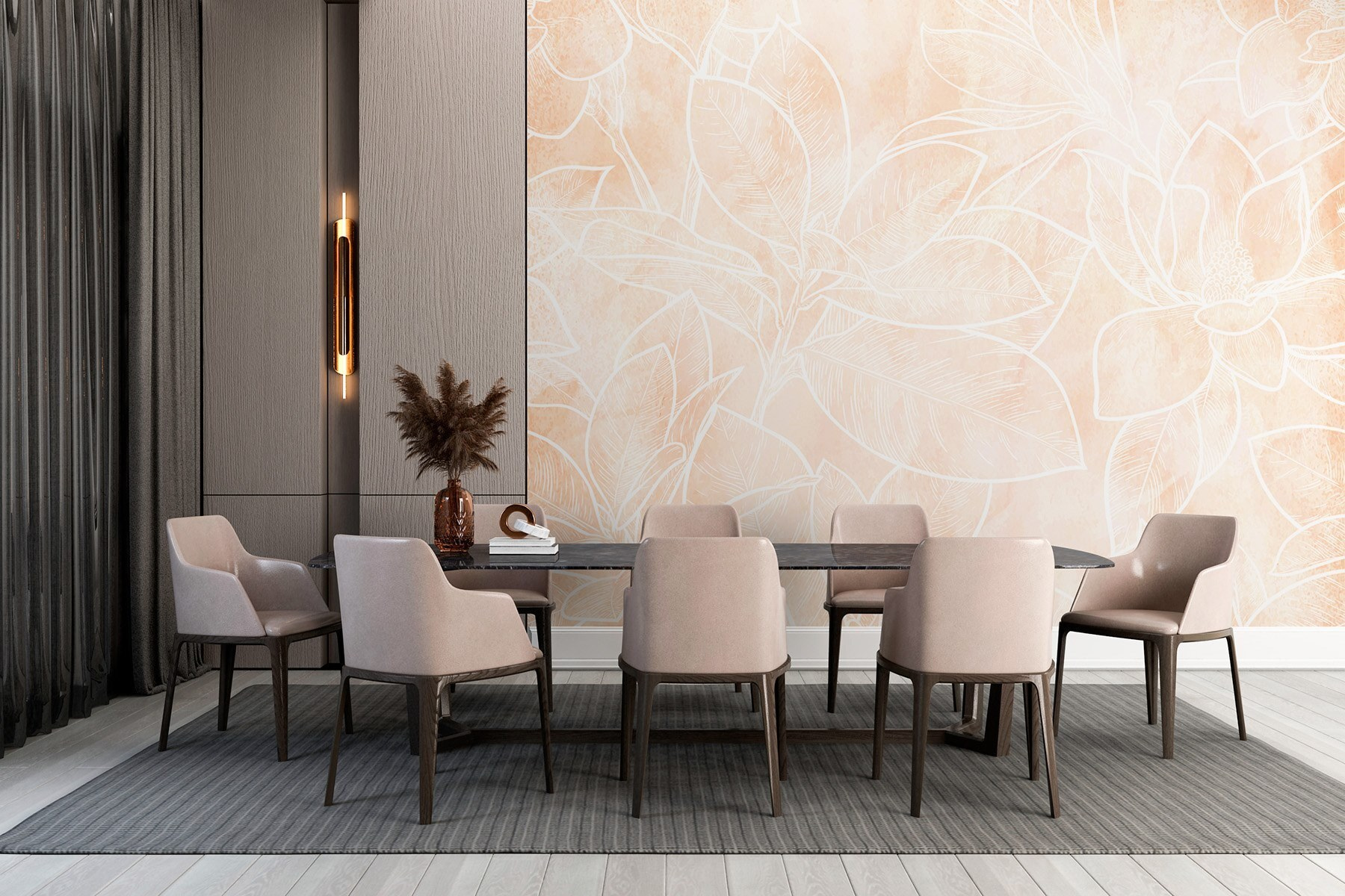Transforme qualquer divisão com este deslumbrante mural de parede com um delicado desenho de linhas brancas de flores. É como convidar uma suave brisa de primavera diretamente para a sua casa. Os tons suaves e os desenhos intrincados não se limitam a decorar uma parede; trazem calor e um toque de natureza para dentro de casa. Imagine bebericar um café enquanto mergulha num espaço que é simultaneamente calmante e estimulante. Perfeito para um recanto acolhedor ou para uma parede de afirmação, é também um início de conversa – quem não gosta de um pouco de charme floral? As suas paredes vão agradecer-lhe!