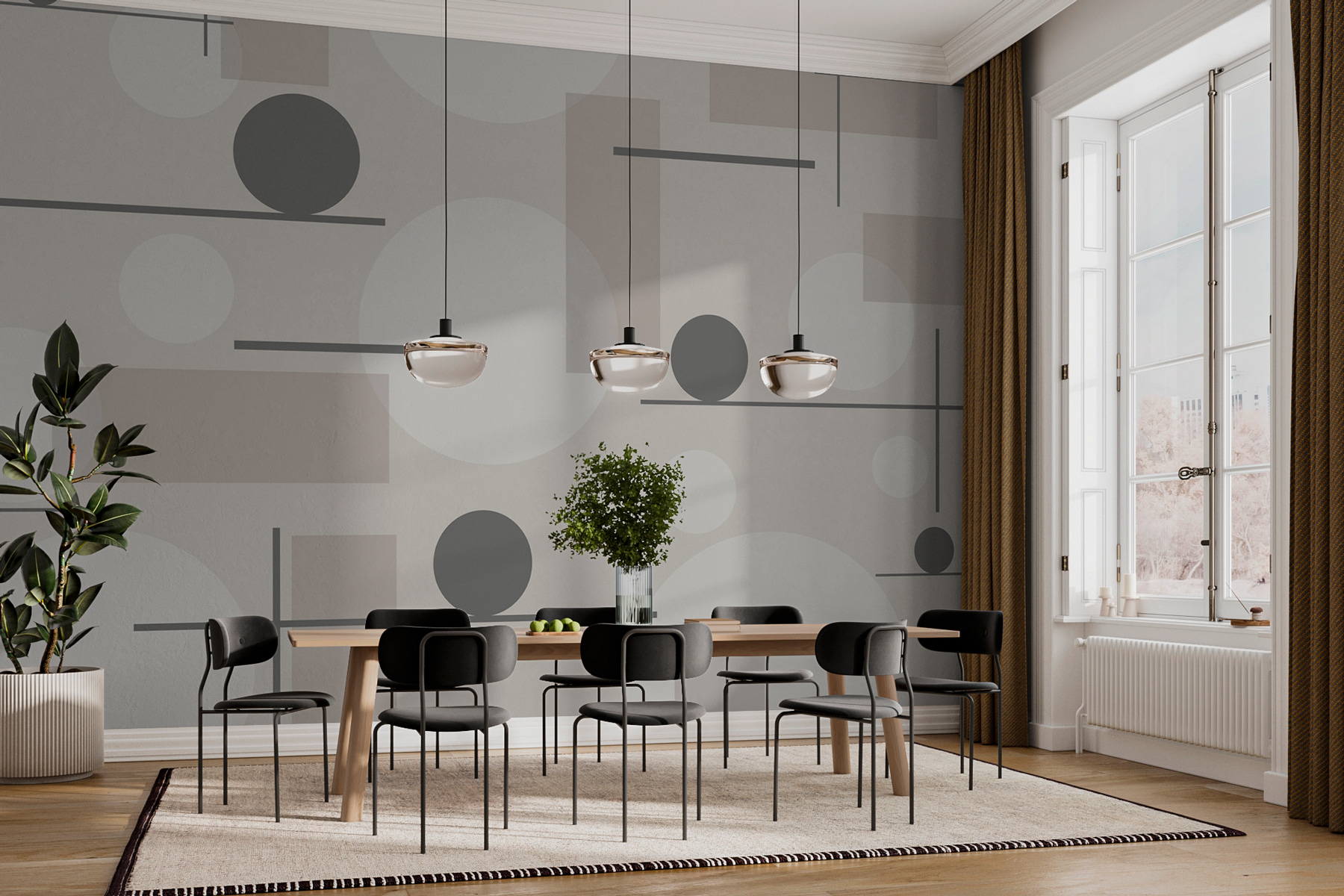 Transforme o seu espaço com este deslumbrante mural de parede com um padrão cinzento e branco chique, polvilhado com círculos e quadrados divertidos. É como arte moderna diretamente nas suas paredes – simples mas intrigante. Imagine um canto acolhedor onde os amigos se reúnem, a beber café e a admirar como este design dá um toque de sofisticação sem esforço. Os tons calmos tornam-no perfeito para um retiro sereno ou para um espaço de trabalho cheio de energia. Para além disso, poderá inspirar pausas para dançar espontaneamente quando a vibração bater. Quem diria que a decoração podia ser tão divertida?
