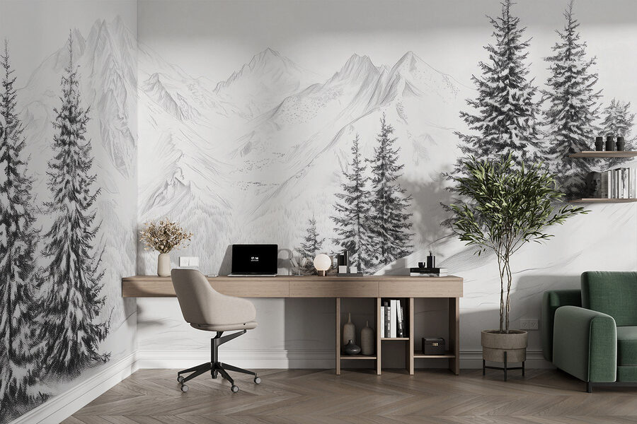 Transforme qualquer divisão numa fuga serena com este deslumbrante mural de parede de uma cadeia de montanhas nevadas. Imagine-se a olhar para esses picos majestosos enquanto se aconchega com uma chávena de cacau – perfeito para estimular a imaginação ou despertar um sonho. Os pormenores intrincados e os tons suaves transmitem uma sensação de calma e admiração, como um sussurro suave da natureza mesmo em sua casa. Não se trata apenas de decoração; é um bilhete para a tranquilidade. Quer se trate de uma sala de estar, de um quarto ou de um escritório, este mural convida à paz e à criatividade. Imagine só – cada parede pode contar uma história – um retiro de inverno aconchegante espera por si!