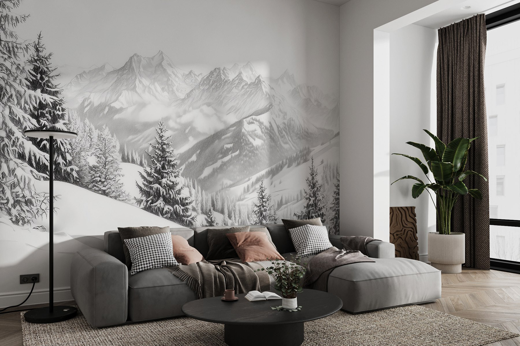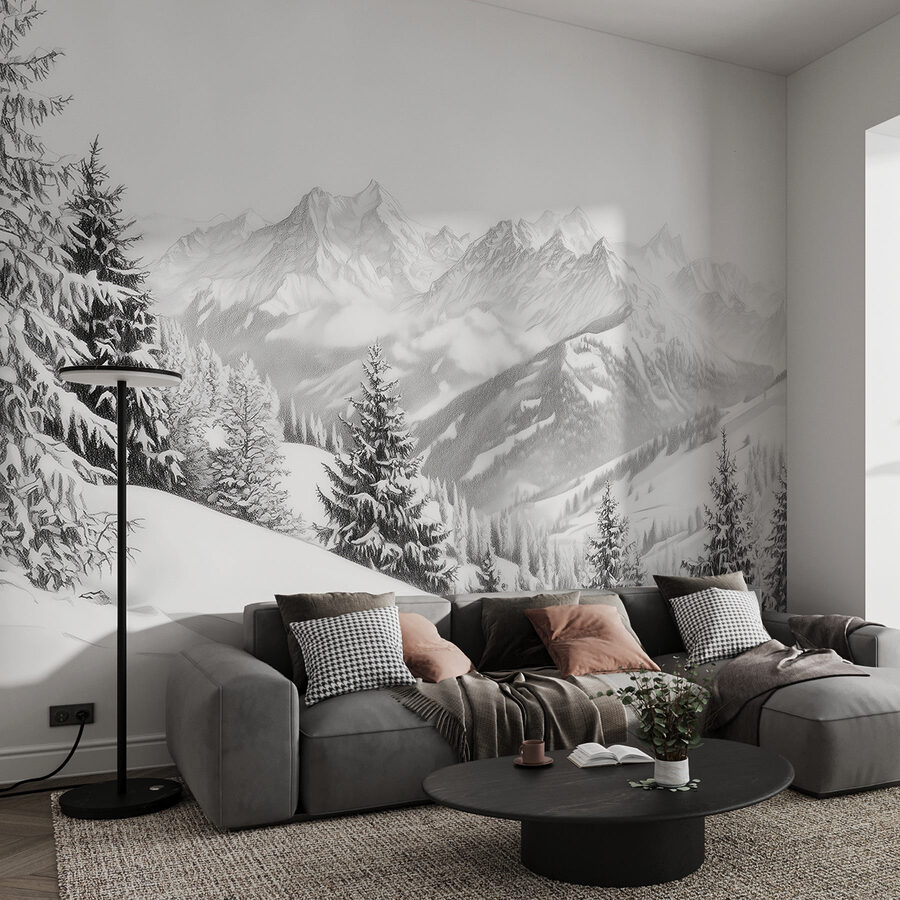 Transforme qualquer divisão numa serena escapadela de inverno com este deslumbrante mural de montanhas nevadas e árvores majestosas. Imagine-se a aconchegar-se com uma bebida quente, a contemplar a paisagem deslumbrante que se sente a um passo de distância. Os brancos tranquilos e os cinzentos suaves evocam uma calma que envolve como um cobertor quente – perfeito para aquelas noites frias. Dê um toque de natureza selvagem às suas paredes e deixe o seu espaço respirar o ar fresco da montanha. Ideal para amantes da natureza e sonhadores, este mural convida a pensamentos pacíficos e a um sentido de aventura, mesmo a partir do sofá.