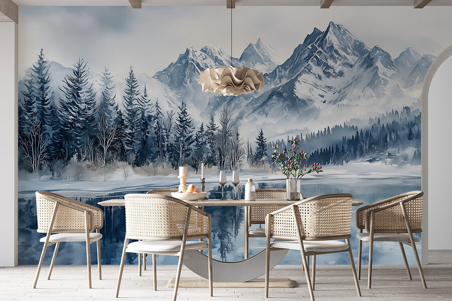 Transforme o seu espaço num país das maravilhas de inverno com este deslumbrante mural de parede de um lago sereno rodeado por montanhas e árvores cobertas de neve. O efeito suave da aguarela convida a uma vibração calma, perfeita para se aconchegar com uma chávena de chá ou fingir ser um guarda-florestal da montanha por um dia. Imagine-se a ver a luz do sol a dançar na água enquanto aqueles picos lhe fazem companhia. É um pequeno pedaço de natureza mesmo na sua sala de estar. Além disso, há algo na neve que faz com que tudo pareça fresco e tranquilo. Quem é que não quereria isso? Faça das suas paredes uma tela de sonhos e perca-se na beleza do inverno, durante todo o ano!