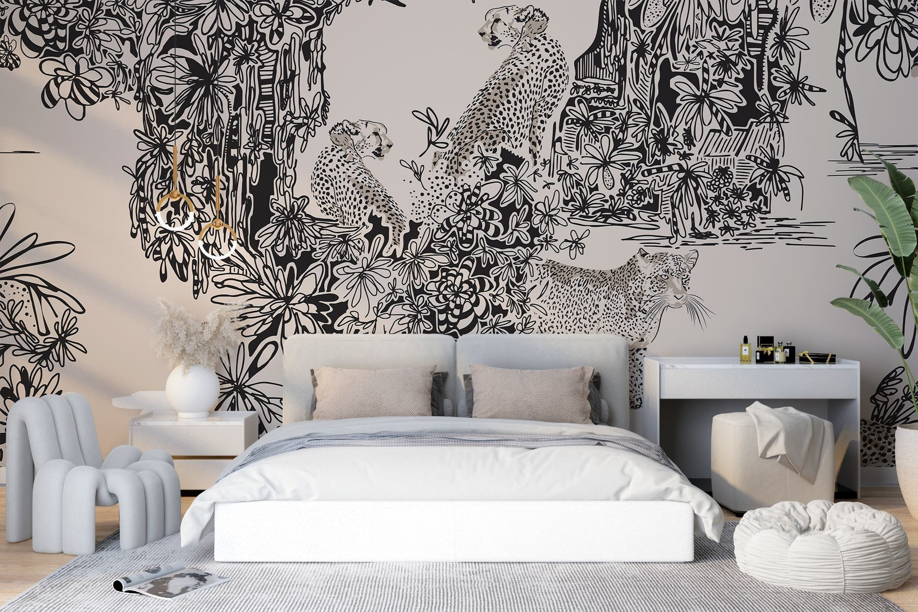 Transforme o seu espaço num retiro selvagem com este deslumbrante mural de parede com graciosas chitas entre plantas exuberantes. Imagine entrar numa sala que parece uma selva banhada pelo sol, onde cada olhar revela esses felinos elegantes a descansar no seu habitat natural. O design intrincado acrescenta um toque de capricho, tornando-o perfeito para quem gosta da beleza da natureza com um toque especial. Imagine-se a receber amigos enquanto eles se maravilham com este cenário único, provocando conversas sobre aventuras na natureza. É como fazer um safari em casa – sem o longo voo! Quer seja para uma sala acolhedora ou para um quarto de criança vibrante, este mural tece uma história de elegância e aventura, trazendo uma fatia dos trópicos diretamente para as suas paredes.