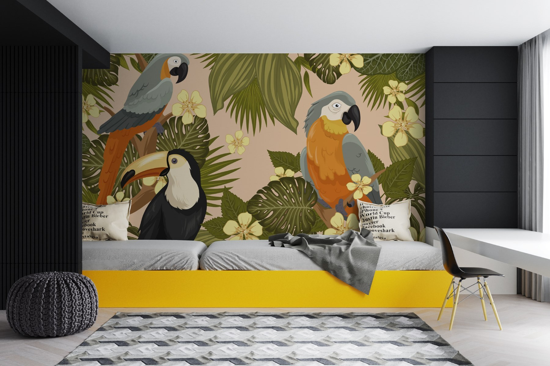 Traga um toque dos trópicos para o seu espaço com este mural de parede vibrante com pássaros animados empoleirados num ramo frondoso. Imagine entrar numa selva em vez da sua sala de estar – aquelas araras coloridas e tucanos alegres praticamente saltam da parede! A mistura divertida de verdes e amarelos acrescenta calor, fazendo com que qualquer divisão se sinta convidativa e viva. É como ter um mini paraíso em casa, sem a humidade. Perfeito para quem quer um toque de natureza sem os insectos. Pense nos elogios dos amigos e nas vibrações instantâneas das férias! As suas paredes merecem esta pequena fuga.