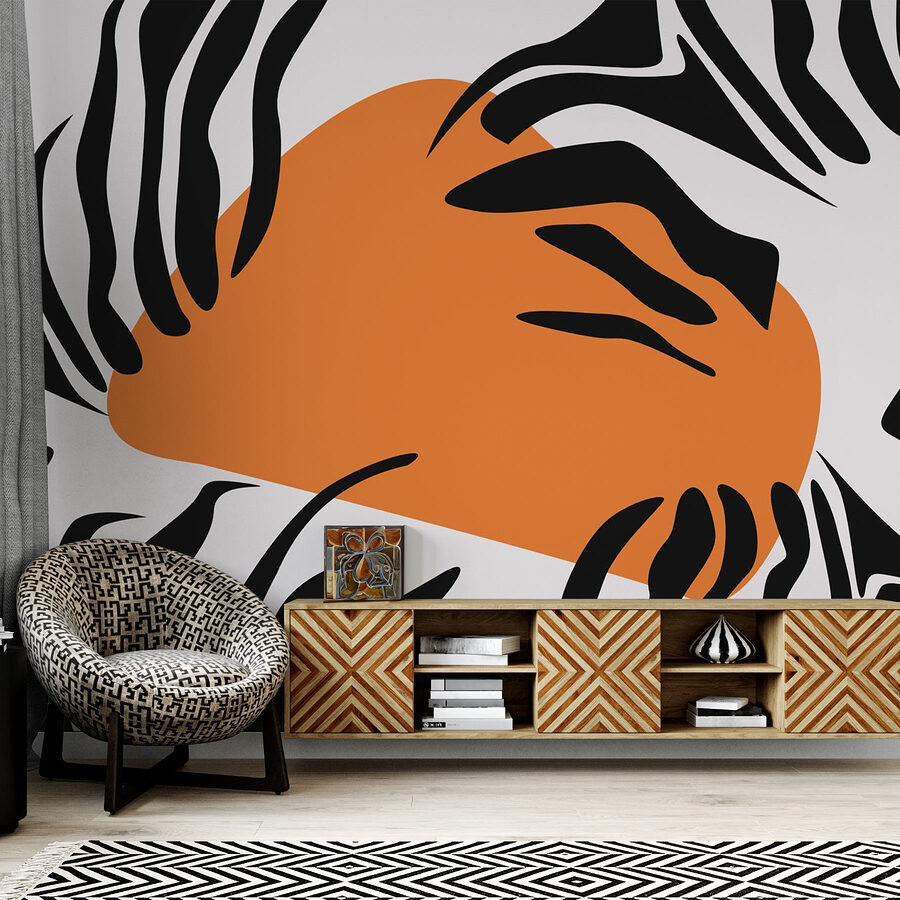 Transformar um espaço pode, por vezes, parecer um truque de magia, e este mural de parede faz exatamente isso. “Padrões dinâmicos em cores arrojadas” dão um toque enérgico que fará qualquer um pensar duas vezes. Imagine as riscas vivas a preto e branco entrelaçadas com um toque de laranja vibrante – é como se a obra de arte o convidasse para uma festa na selva divertida, mesmo na sua sala de estar.