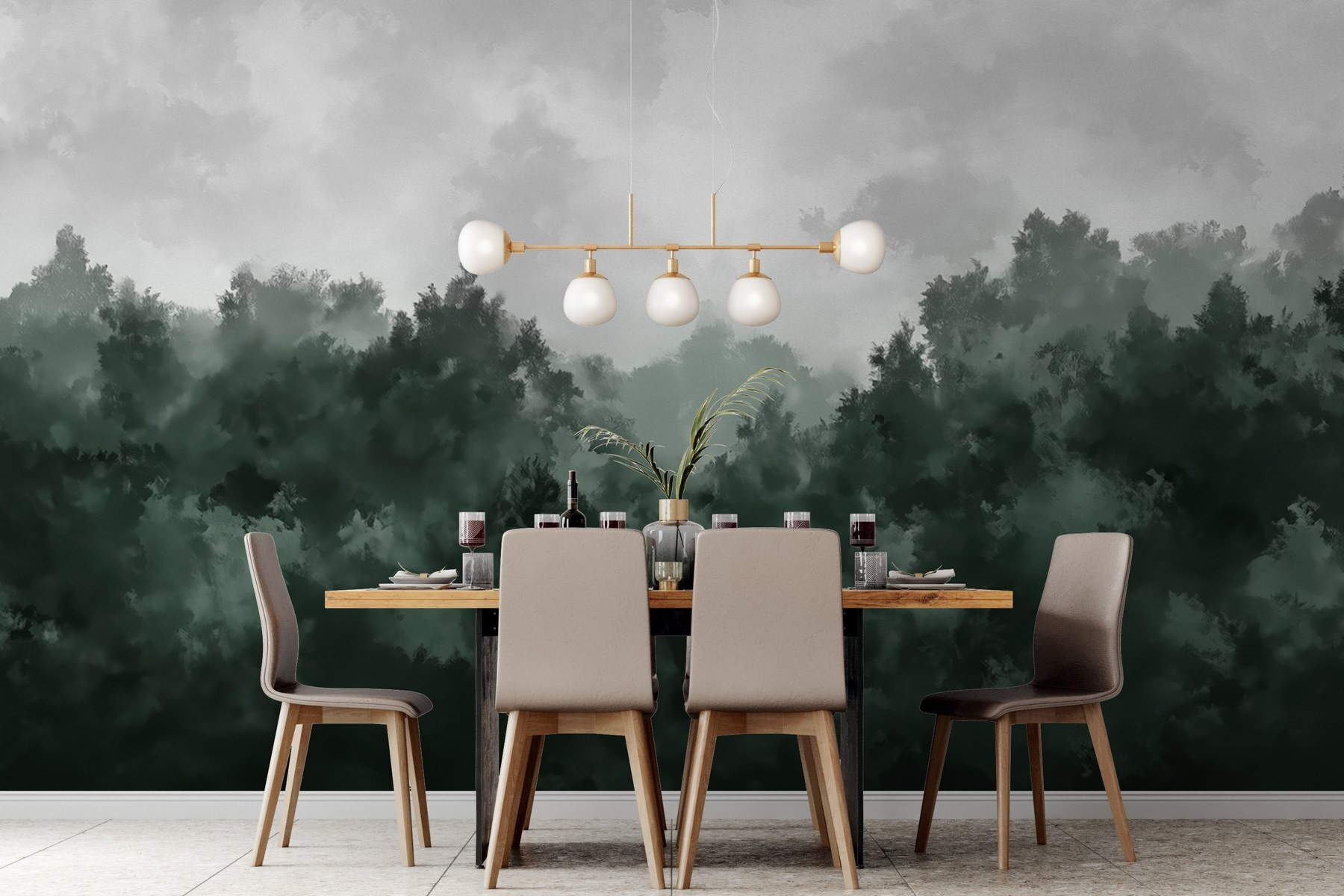 Transforme qualquer divisão numa fuga serena com este deslumbrante mural de parede “Foggy Forest”. Imagine entrar no seu espaço e ser recebido pelos sussurros suaves de árvores envoltas em nevoeiro. É como entrar num ambiente acolhedor e selvagem, onde cada olhar convida à tranquilidade. Os verdes profundos e os cinzentos suaves criam um ambiente calmante, perfeito para descontrair após um longo dia. Ou imagine uma reunião com amigos – este mural suscitará conversas sobre a beleza da natureza. É mais do que uma decoração; é um ambiente. Traga um toque do ar livre para o interior e deixe as suas paredes respirarem vida!