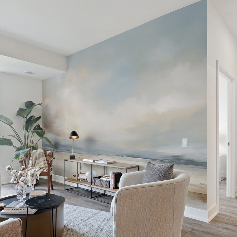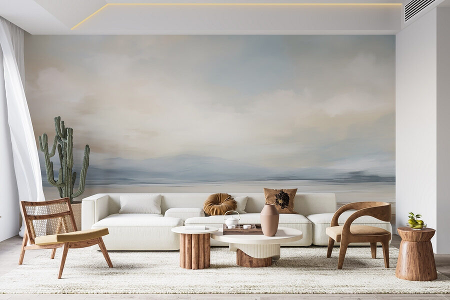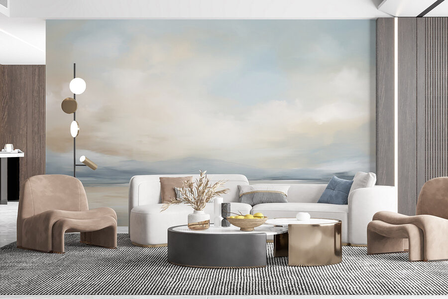 Transforme o seu espaço com este mural de parede sereno, “Paisagem com um corpo de água e nuvens”. Imagine-se a entrar numa sala onde as cores calmantes sussurram tranquilidade e as nuvens suaves flutuam por cima. Este mural puxa-o para uma fuga de sonho à beira-mar – perfeito para quando não se pode ter aquela vista para o mar em casa. Imagine-se a beber café, a contemplar esta paisagem vasta e pacífica e a sentir o seu stress a desaparecer. É como umas mini-férias todos os dias! Ideal para uma sala de estar ou um recanto acolhedor, convida ao relaxamento, à conversa e talvez até a um ou dois sonhos. Quem não quereria isso?