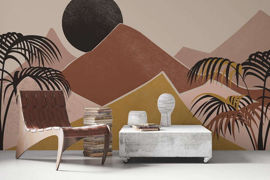 Transforme qualquer divisão com este espantoso mural de parede, “Paisagem com palmeiras e montanhas”. Imagine entrar num refúgio acolhedor sempre que olhar para ele. Os tons quentes e terrosos combinados com as silhuetas de palmeiras balançando fazem dele um cenário perfeito para devaneios de lugares distantes. Este mural sussurra “vibrações de férias” e faz maravilhas numa sala de estar, quarto, ou mesmo num recanto criativo. É como um abraço suave da natureza, mesmo em casa. Além disso, essas montanhas prometem aventuras sem sair do sofá – quem poderia resistir?