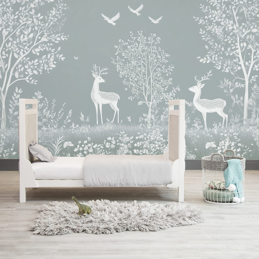 Transforme o seu espaço numa fuga serena com este mural de parede encantador que apresenta graciosos veados brancos a vaguear por uma floresta suave e frondosa. Imagine entrar no seu quarto e sentir-se como se tivesse entrado numa floresta de sonho repleta de suaves sussurros da natureza. Os delicados pássaros que esvoaçam por cima dão-lhe um toque de capricho, tornando-o o cenário perfeito para noites acolhedoras ou manhãs inspiradoras. É como ter um retiro tranquilo mesmo em casa! Quer esteja a beber chá ou a ler um livro, este mural convida a esses pequenos e doces momentos de calma. Além disso, é um ótimo início de conversa – quem não gostaria de falar sobre a sua floresta secreta?