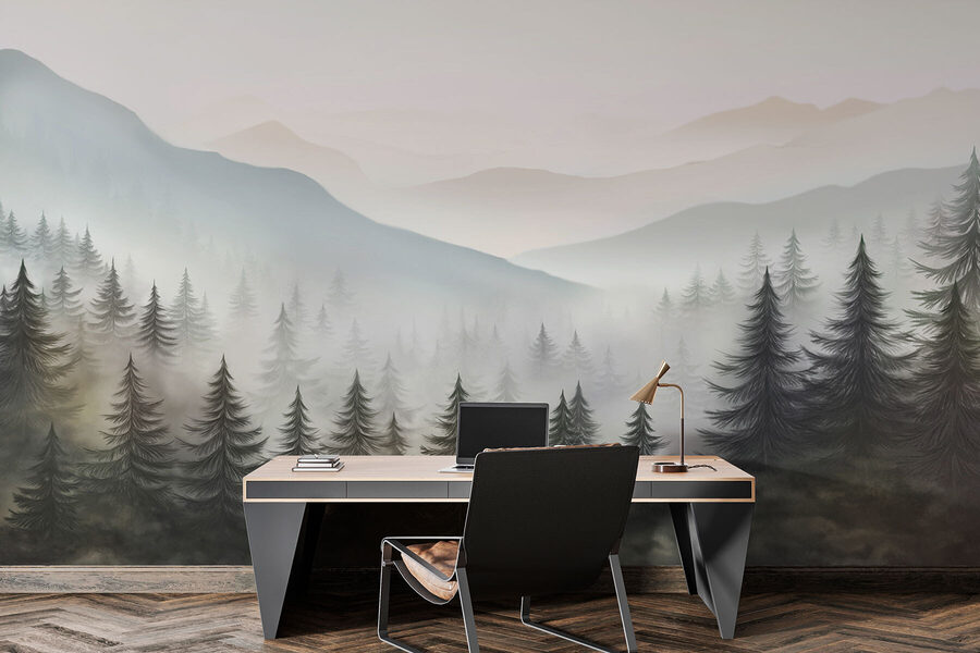 Imagine entrar numa floresta serena, onde a névoa dança à volta de árvores imponentes e as montanhas surgem suavemente à distância. Este mural, “Foggy Landscape with Trees and Mountains” (Paisagem enevoada com árvores e montanhas), traz essa fuga de sonho diretamente para a sua casa. É perfeito para um recanto de leitura acolhedor ou um quarto zen, convidando a uma sensação de calma. Imagine-se a relaxar aqui depois de um longo dia, talvez com uma chávena de chá, enquanto a natureza sussurra doces palavras através do nevoeiro. Os tons suaves acrescentam um toque de elegância, fazendo com que o seu espaço se sinta como um pequeno pedaço do paraíso. Com este mural, transformar as suas paredes num retiro tranquilo está apenas a um passo de distância!