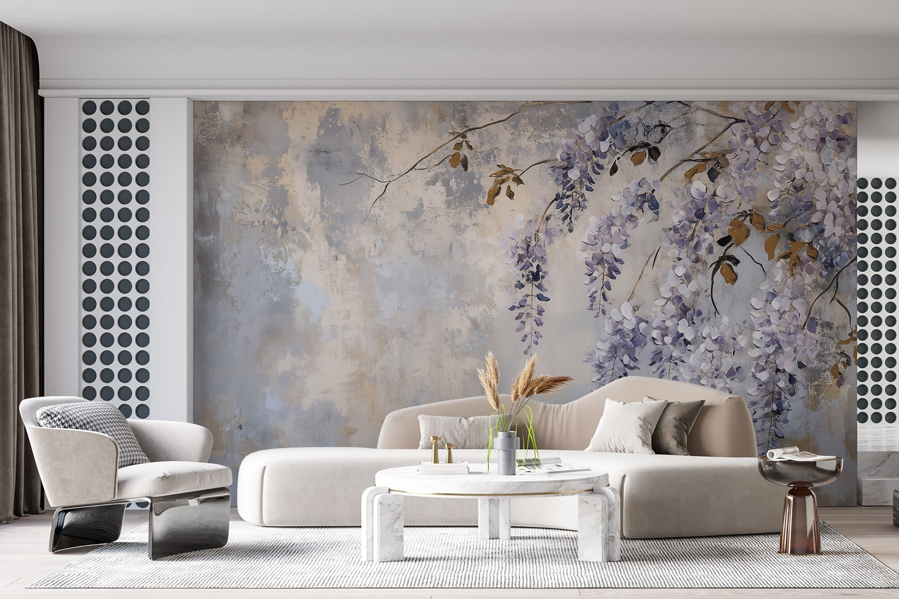 Transforme o seu espaço com este deslumbrante mural de parede que apresenta um ramo delicado adornado com lindas flores roxas. É como ter um jardim sereno em sua casa sem precisar de um polegar verde! A paleta suave de azuis e roxos cria uma atmosfera calma e convidativa. Imagine-se a acordar com esta beleza – vai fazer com que os momentos do café da manhã sejam ainda mais especiais. Quer seja num recanto acolhedor ou numa sala de estar luminosa, este mural sussurra elegância e charme, ao mesmo tempo que desperta pequenos devaneios de passeios na primavera. Perfeito para quem aprecia o toque da natureza dentro de casa!