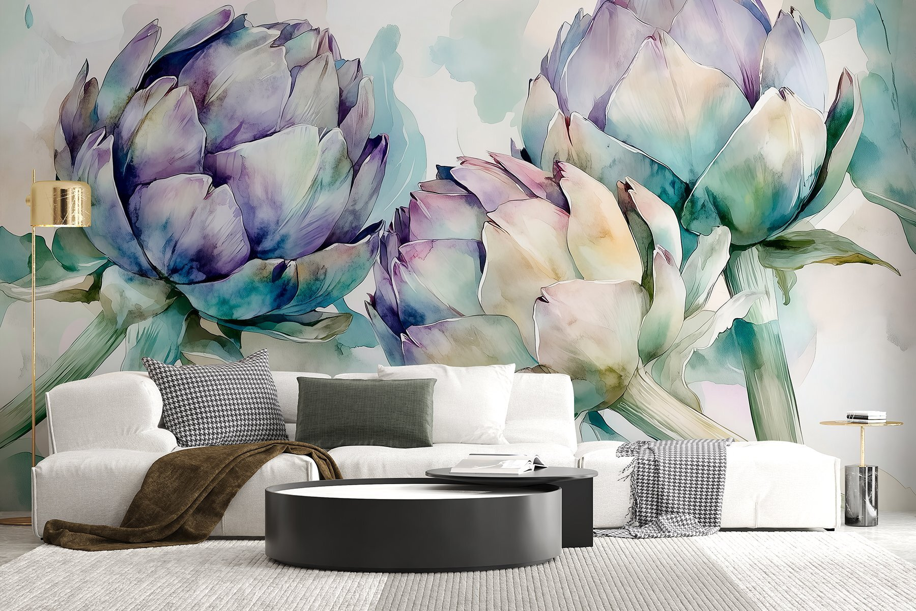 Transforme qualquer espaço com este mural deslumbrante que apresenta alcachofras delicadas num fundo branco suave. Imagine entrar numa divisão e sentir-se imediatamente atraído pelas vibrações serenas e aquareladas destes vegetais encantadores. Perfeito para uma cozinha acolhedora ou uma área de jantar cheia de luz, este mural sussurra calor e criatividade. É como convidar um pequeno jardim para dentro de casa, sem a sujidade e os regadores. Os amigos vão desmaiar, e pode até dar por si a falar de receitas de alcachofras com mais frequência – quem diria que poderiam inspirar tanta curiosidade culinária? Uma pitada da beleza da natureza que traz um toque de calma à vida quotidiana.