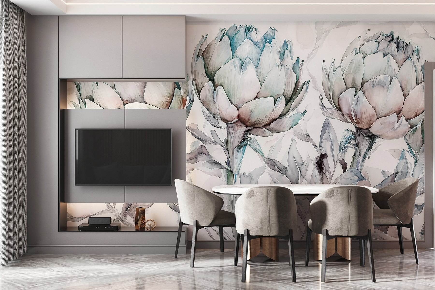 Veja exatamente como ficará o seu espaço com o novo papel de parede antes de comprar. Visualização profissional por designers especializados, sem qualquer custo ou obrigação de compra.