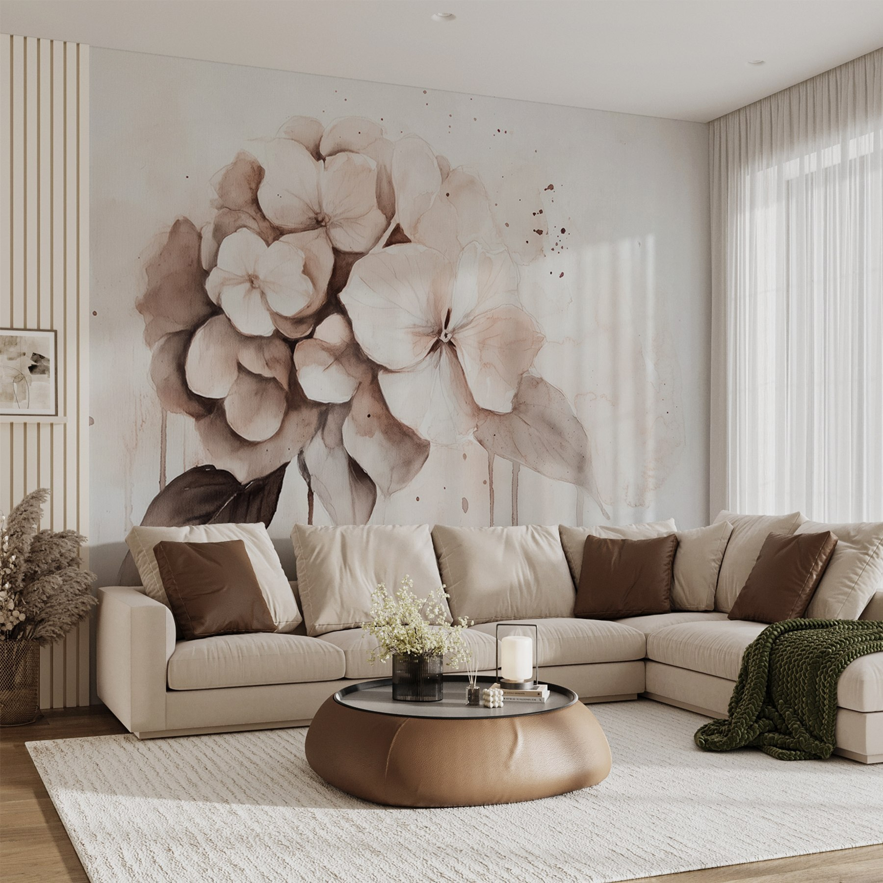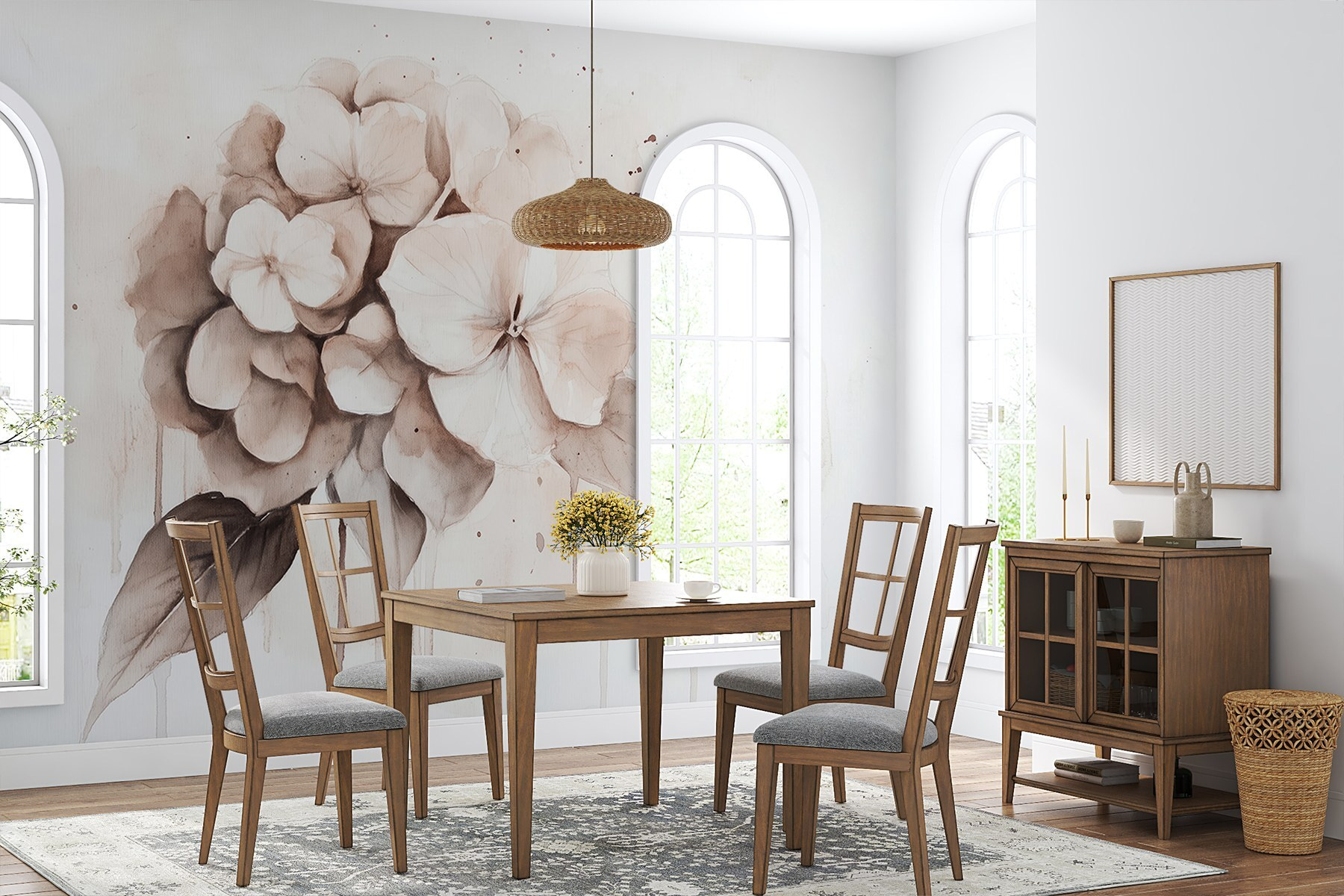 Transforme uma parede monótona numa delícia florida com este mural encantador de flores delicadas. Imagine acordar todos os dias, saudado por pétalas suaves e cores suaves que sussurram tranquilidade. É como trazer uma fatia de um jardim sereno diretamente para o seu espaço. Perfeito para um recanto acolhedor ou para uma parede de afirmação, este design acrescenta uma vibração calmante sem sobrecarregar os sentidos. Os amigos podem pensar que tem um polegar verde! Além disso, combina lindamente com todo o tipo de decoração, desde rústica a moderna. Capture essa sensação refrescante do ar livre dentro de casa – as suas paredes merecem este pequeno mimo.