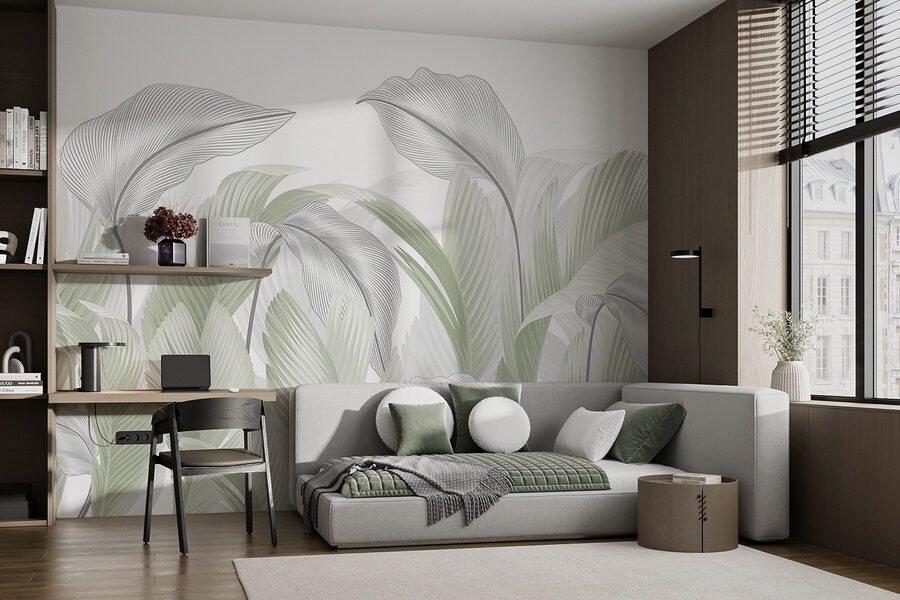 Transforme qualquer espaço num oásis tranquilo com este deslumbrante mural, “Gentle Curves of Leafy Elegance”. Imagine entrar num retiro tranquilo a partir da sua sala de estar – estas folhas de palmeira lindamente esboçadas dançam graciosamente, acrescentando um toque de encanto da natureza às suas paredes. Os verdes suaves e as linhas intrincadas misturam-se sem esforço, fazendo com que a divisão se sinta mais aberta e arejada. Imagine-se a enrolar-se com um livro, com as folhas a sussurrarem suavemente as suas vibrações calmas. É como ter uma fatia de um jardim sereno mesmo em casa. Quem precisa de férias quando a sua parede faz todo o trabalho pesado?