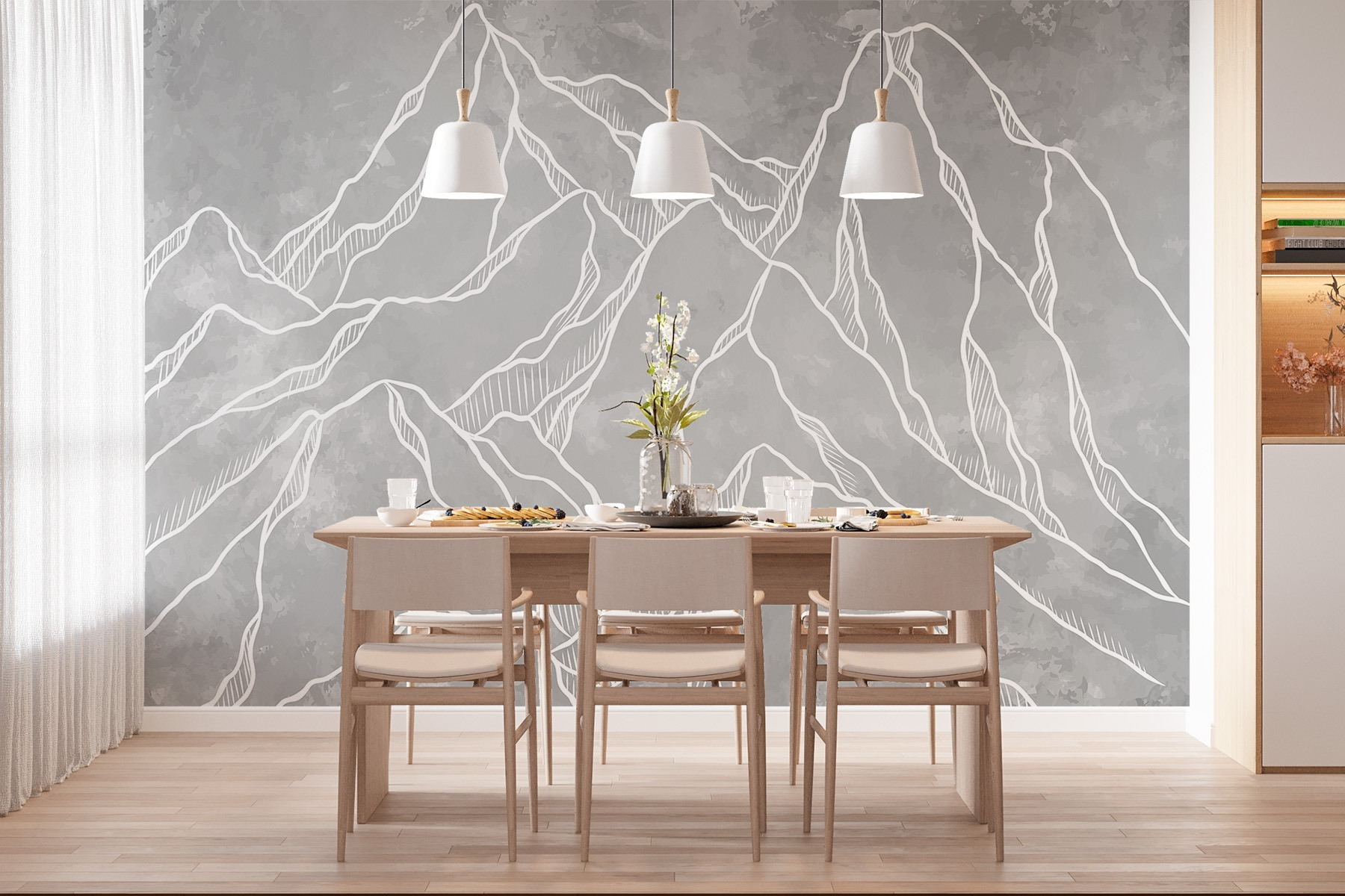Imagine entrar numa sala e sentir que acabou de entrar numa serena cadeia de montanhas. Este mural de parede, com o seu gracioso e abstrato contorno de picos, traz um ar de tranquilidade a qualquer espaço. Perfeito para criar um cenário calmante num quarto ou para dar um toque especial a uma sala de estar acolhedora, convida a sonhar acordados com caminhadas na montanha e brisas frescas. Os cinzentos e brancos suaves combinam harmoniosamente com qualquer decoração, tornando-a versátil e deslumbrante. É como ter um pedaço da natureza mesmo na parede – quem não quereria isso? O mural sussurra aventura, ao mesmo tempo que dá ao quarto uma atmosfera de paz. Perfeito para aqueles que procuram uma mistura de criatividade e calma. O que há para não adorar?