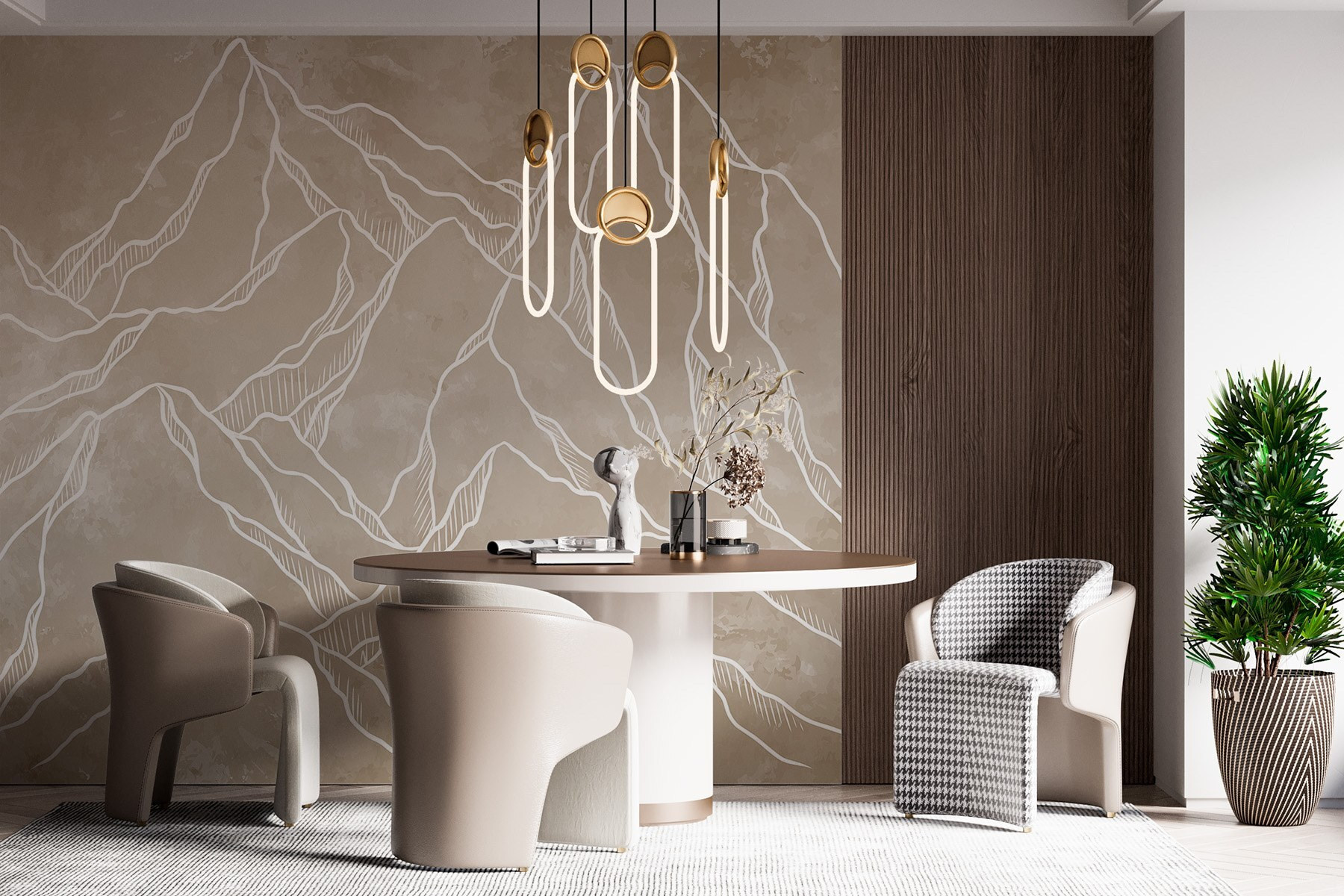 Transforme qualquer divisão numa fuga serena com este mural de parede deslumbrante que apresenta uma cadeia de montanhas lindamente desenhada. Imagine-se a beber o seu café da manhã enquanto contempla aqueles picos elegantes – quase o faz sentir como se estivesse numa caminhada na montanha sem suar! Os tons suaves de terra combinam facilmente com qualquer decoração, trazendo um toque de natureza para dentro de casa. Quer seja numa sala de estar acolhedora ou num espaço de escritório frio, este mural acrescenta uma vibração calorosa e convidativa. Para além disso, é perfeito para sonhar acordado; as montanhas majestosas podem provocar uma aventura espontânea. Quem é que não quereria isso? Abrace a calma da natureza mesmo em casa!