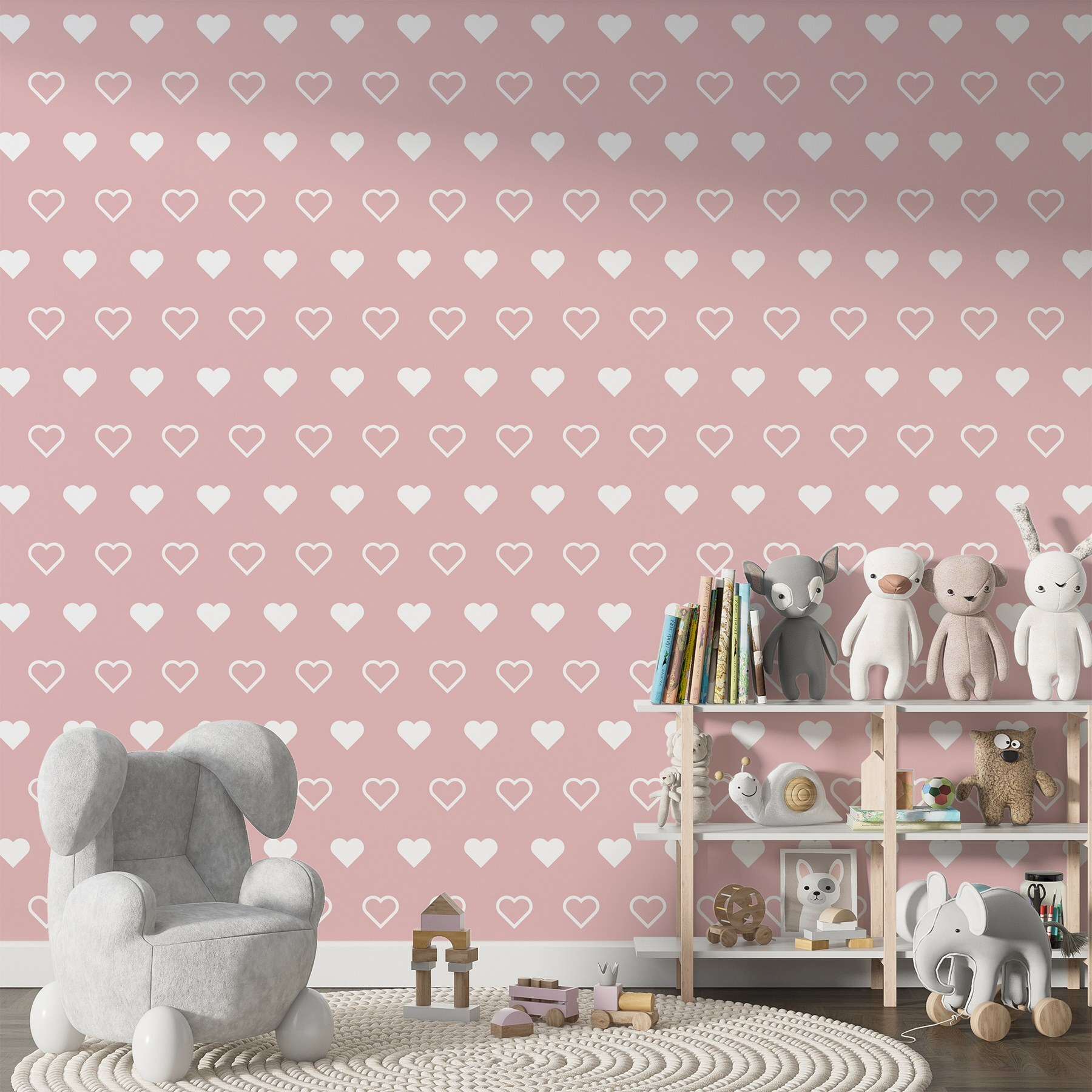 Ilumine qualquer espaço com este mural de parede encantador que apresenta um padrão encantador de corações brancos num fundo cor-de-rosa alegre. Imagine entrar numa sala que instantaneamente se sente como um abraço acolhedor – este mural faz exatamente isso! É perfeito para um berçário, uma sala de estar divertida, ou mesmo um escritório chique onde se quer um toque de felicidade.