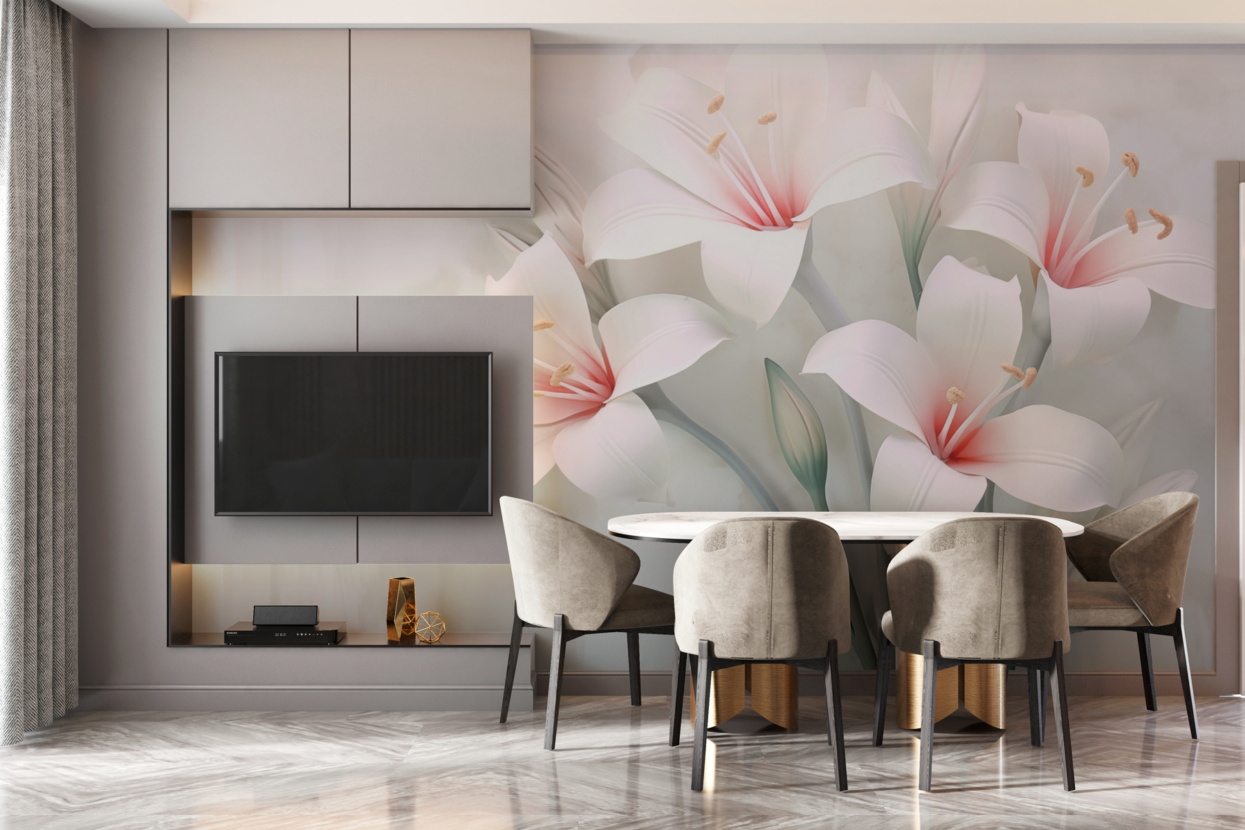Perfeito para salas de estar acolhedoras ou quartos tranquilos, este mural acrescenta um toque de suavidade que eleva instantaneamente o ambiente. Imagine-se a enrolar-se com um livro, rodeado por estas lindas flores, enquanto uma leve brisa traz ar fresco. É o tipo de cenário que pode inspirar alguns devaneios ou dois. A sério, quem não gostaria de ter esse tipo de ambiente?
