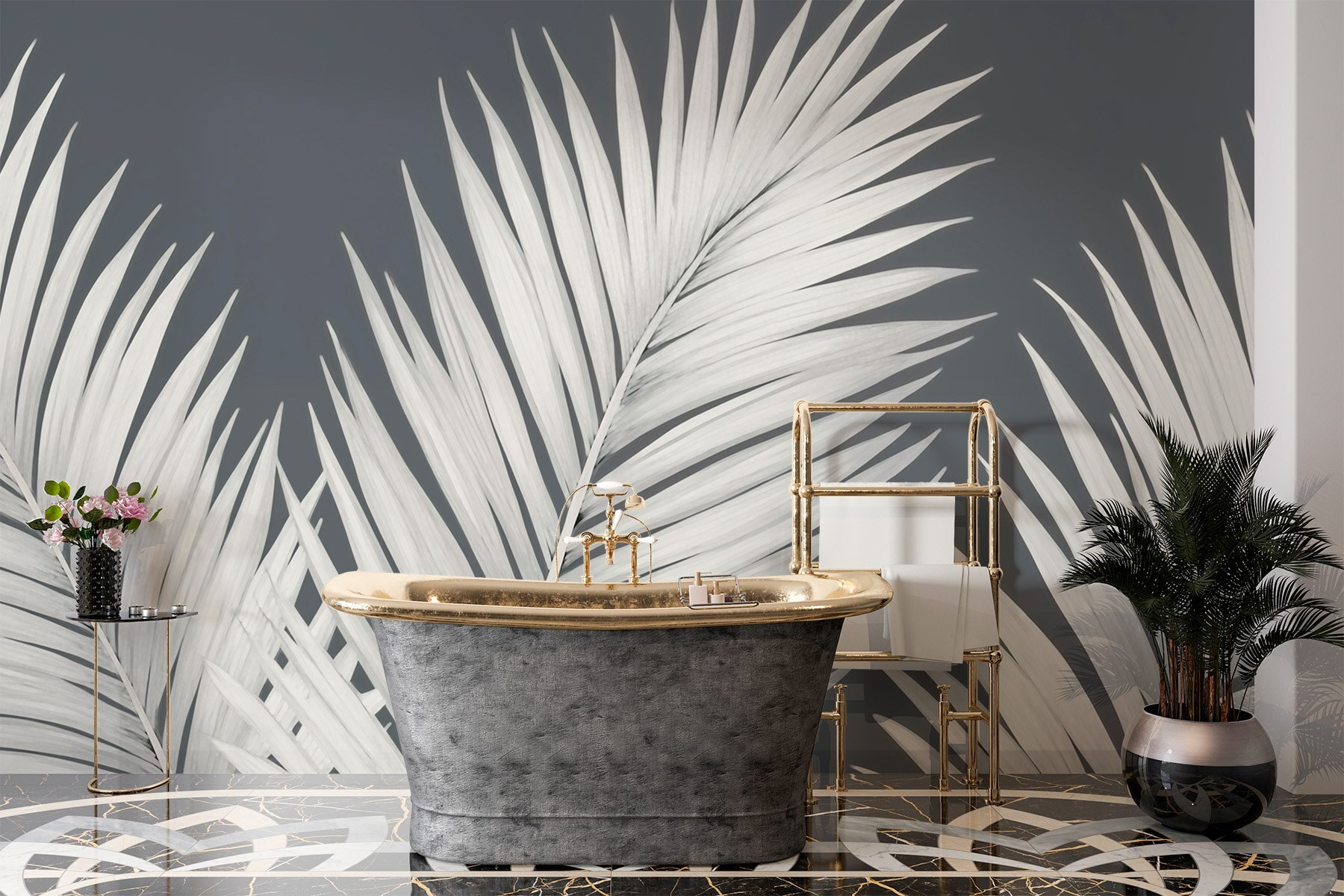 Papel de parede Elegantes folhas de palmeira contra um fundo cinzento (REF: w02569)