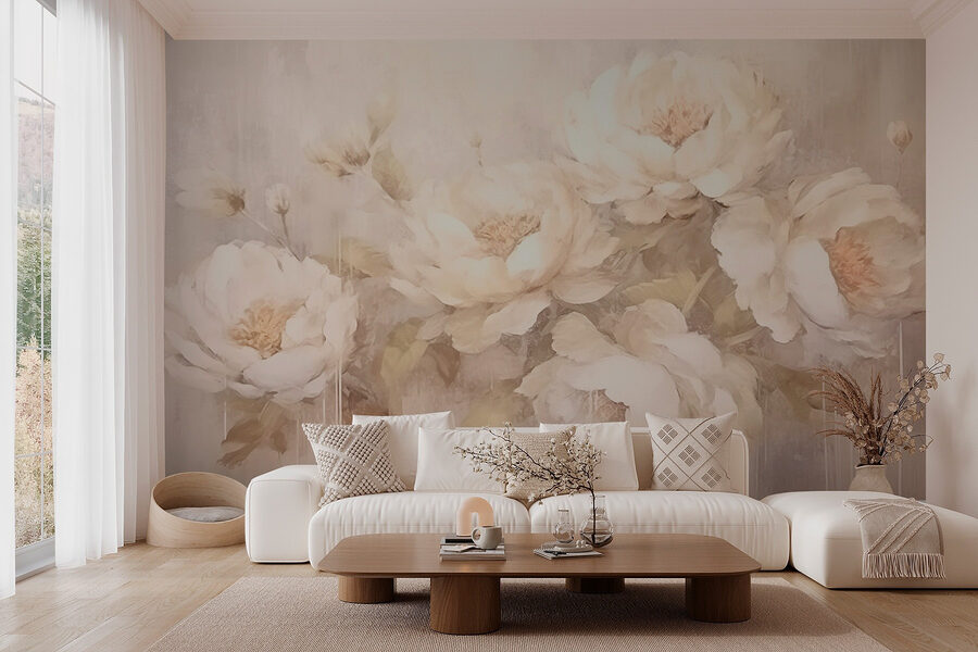Transforme qualquer divisão com este lindo mural de parede de flores brancas. Imagine isto: um espaço acolhedor onde estas peónias suaves e florescentes parecem dançar na parede, trazendo uma lufada de ar fresco para a sua casa. Não são apenas flores; são um abraço suave para os olhos. Imagine-se a beber chá enquanto olha para as delicadas pinceladas, sentindo-se calmo e inspirado ao mesmo tempo. É como se as suas paredes tivessem um jardim secreto, cheio de tranquilidade e encanto. Perfeito para aqueles que anseiam por um toque de natureza dentro de casa, este mural é como convidar a primavera para a sua vida quotidiana.