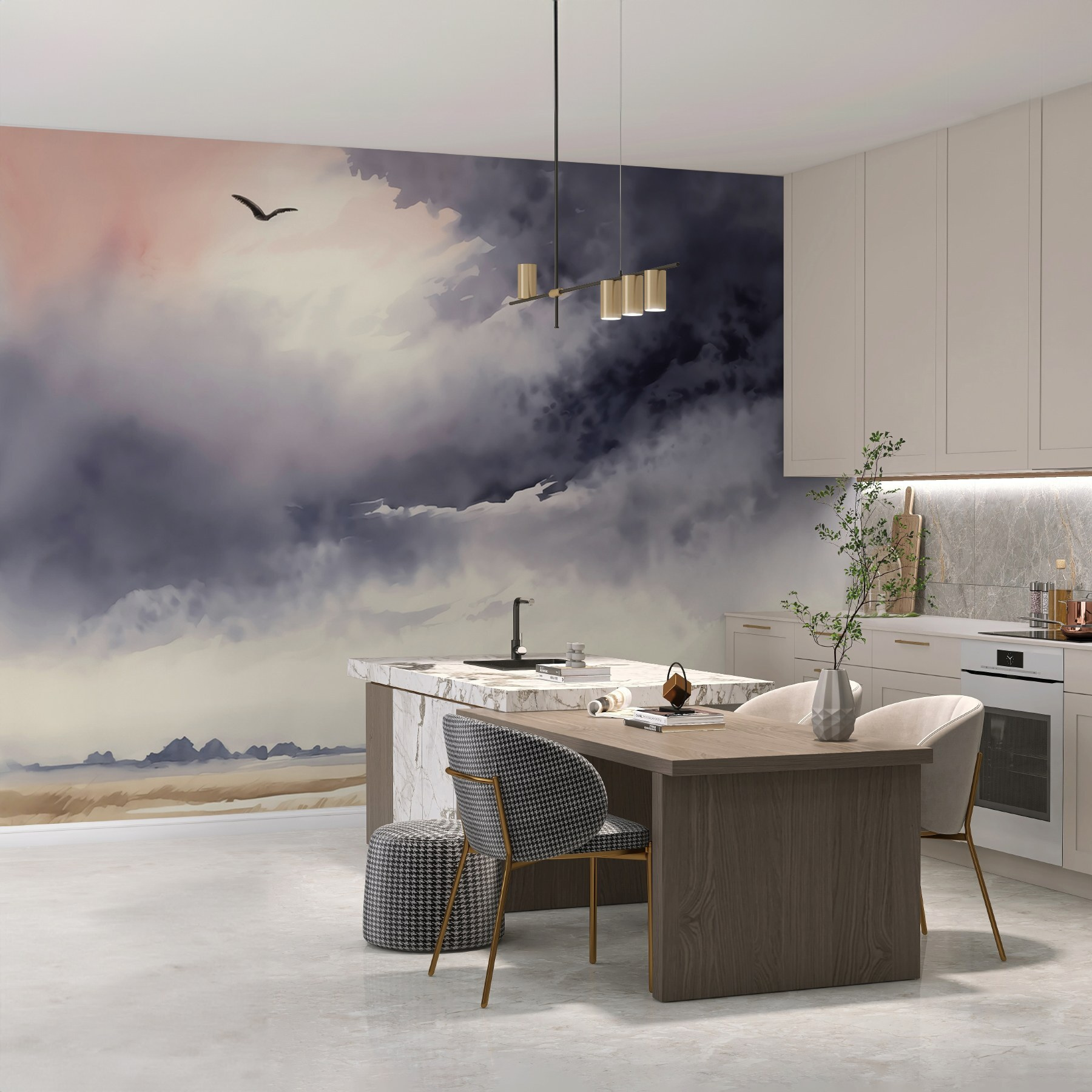 Transforme o seu espaço com o encantador mural “Bird Flying Over a Field”. Imagine entrar num panorama sereno onde um pássaro solitário desliza por céus de sonho em aguarela. Estes tons suaves trazem uma vibração calmante – perfeita para criar um recanto de leitura acolhedor ou um escritório inspirador. Imagine-se a beber café enquanto olha para estas nuvens, que sussurram segredos que todos gostaríamos de poder ouvir. É como ter uma janela para a natureza mesmo na sua parede, lembrando-o de respirar fundo e absorver a beleza exterior. Ideal para os amantes de uma decoração única, este mural envolve qualquer divisão em tranquilidade, fazendo com que cada momento seja um pouco mais mágico.
