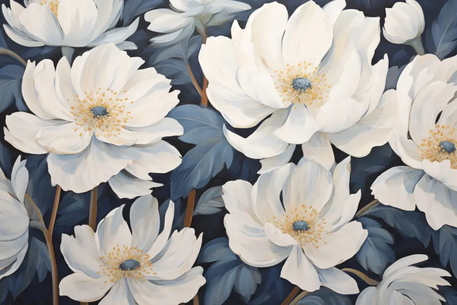 Ilumine qualquer divisão com este espantoso mural de parede de flores brancas – pura elegância envolta em pétalas. Imagine entrar num espaço onde peónias de grandes dimensões roubam o espetáculo, cada uma delas desenrolando-se graciosamente como um abraço de boas-vindas. Os brancos suaves e os verdes frondosos criam uma vibração serena, perfeita para momentos de calma ou para despertar pensamentos criativos. É como ter um pequeno santuário de jardim mesmo em sua casa. Além disso, não é necessário regar! Perfeito para quem aprecia a beleza floral sem a confusão – basta sentar-se, relaxar e deixar o mural falar!