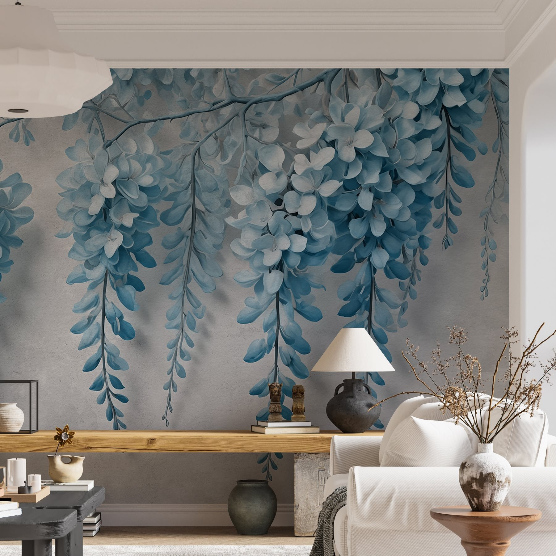 Transforme o seu espaço num retiro acolhedor com este deslumbrante mural de parede com ramos adornados com delicadas flores azuis. Imagine-se a passear por um jardim sereno, onde a brisa suave transporta doces aromas florais. É essa a vibração que este mural traz! É brilhante e calmante, perfeito para um quarto ou sala de estar. Imagine vislumbrar estas lindas flores enquanto bebe o seu café da manhã ou relaxa depois de um longo dia. É como trazer uma fatia da natureza para dentro de casa, mas sem as alergias incómodas. As suas paredes merecem um pouco de charme floral, não é verdade?