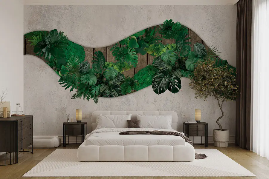 Transforme qualquer divisão com este deslumbrante mural com folhas verdes em cascata sobre uma superfície de madeira. Imagine entrar numa selva vibrante a partir da sua sala de estar – cada detalhe de folhas traz uma vibração fresca e tropical difícil de resistir. Parece que a natureza se convidou para dentro de casa, fazendo com que as paredes ganhem vida com uma explosão de vida. Imagine-se a relaxar num sofá acolhedor, com a luz do sol a entrar e este lindo mural como pano de fundo. Isto é que é um estímulo instantâneo para a disposição! Quer seja para um escritório em casa ou para uma zona de relaxamento, é uma escolha perfeita para quem procura adicionar um pouco de diversão e estilo. Além disso, quem não gostaria de ter um toque do ar livre, sem os insectos?