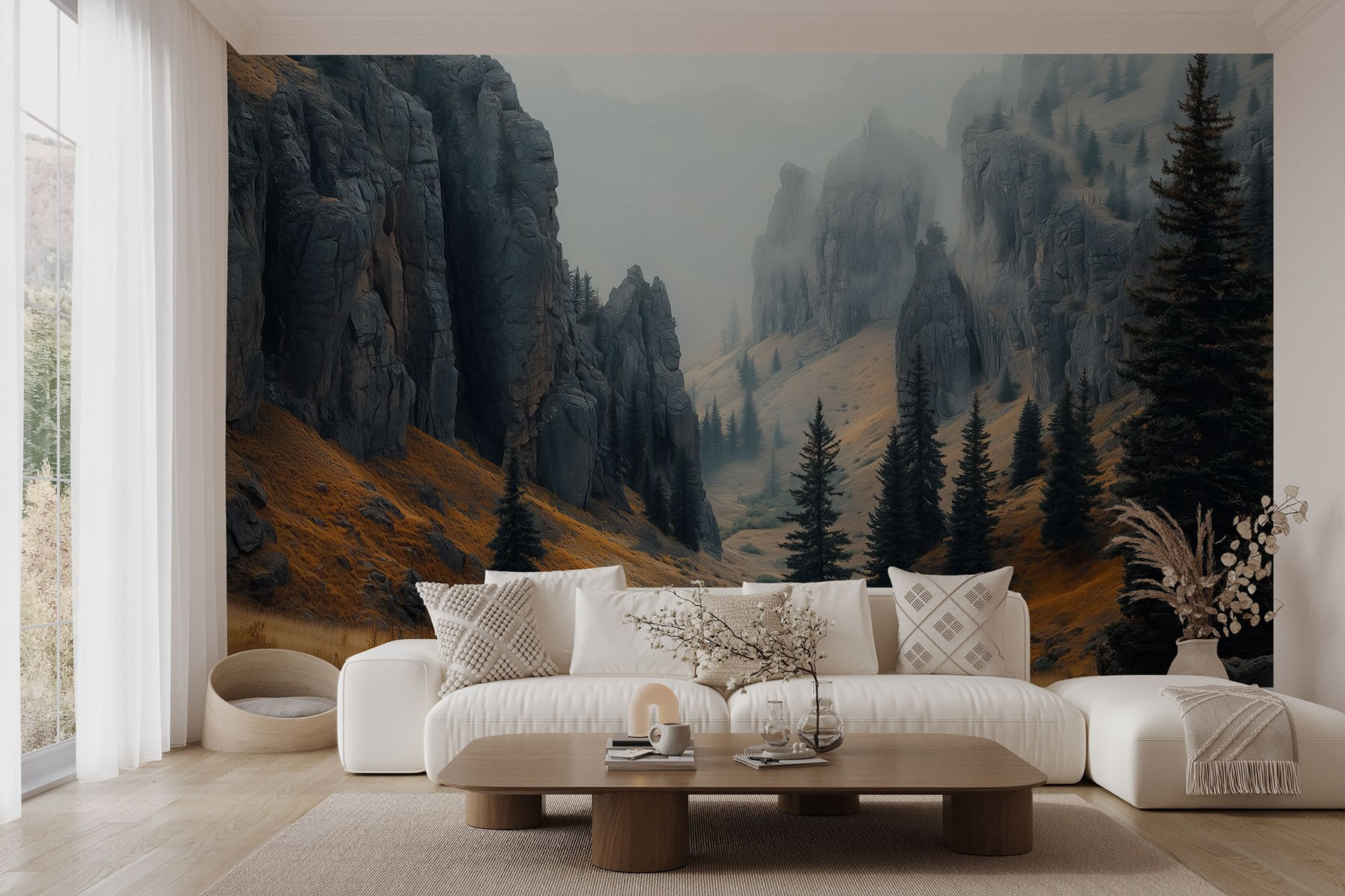 Transforme qualquer divisão num acolhedor retiro de montanha com este deslumbrante mural de parede de montanhas rochosas envoltas num suave nevoeiro. Imagine-se a acordar com esta paisagem serena em vez de uma parede em branco – fale sobre um impulsionador de humor! Os verdes profundos das árvores saltam contra os tons de terra, convidando um toque de natureza diretamente para o seu espaço. É perfeito para quem sonha em fugir para a natureza, mas continua a apreciar uma chávena de café quente em casa. Imagine só: As manhãs de domingo passadas a bebericar essa chávena enquanto os miúdos constroem fortalezas – isso é que é uma recordação! Para além disso, as vibrações do nevoeiro da montanha? Tão atmosférico. Quer seja numa sala de estar, num escritório ou mesmo num recanto de meditação, este mural tem a mistura perfeita de aventura e calma. É como uma lufada de ar fresco da montanha sem as botas de caminhada. Então, porque não fazer uma pequena viagem sem sair do sofá?