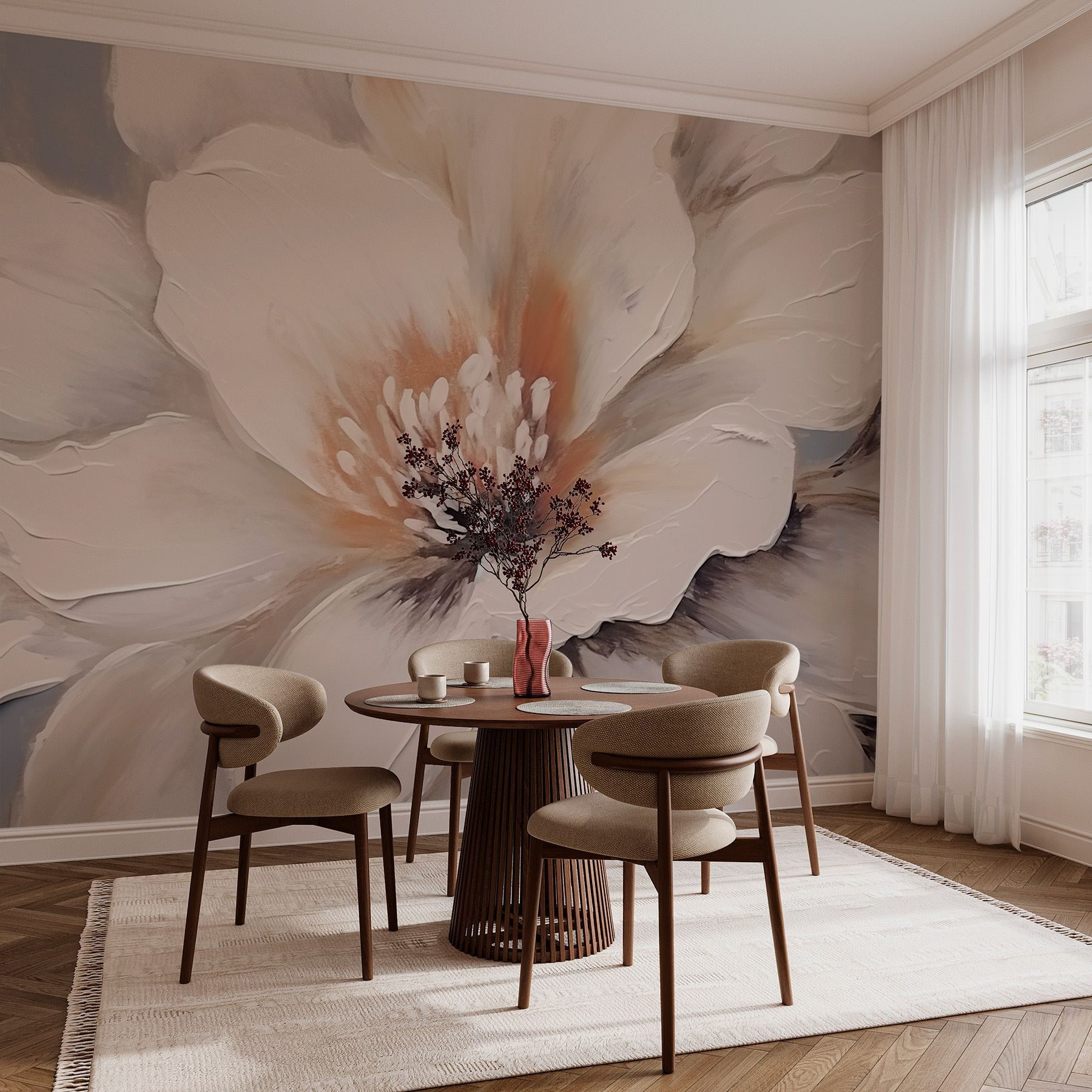 Transforme qualquer divisão num oásis de tranquilidade com o mural “Delicate Petals in Soft Hues”. Imagine-se a passear por um jardim sereno, onde as flores arejadas sussurram doces segredos em tons suaves. Este mural capta essa vibração de sonho, trazendo um toque de natureza diretamente para o seu espaço. Perfeito para cantos acolhedores ou paredes espaçosas, acrescenta uma elegância suave que acalma a alma. Imagine-se a enrolar-se com um bom livro, rodeado por estas lindas peónias. É como ter um pequeno pedaço de primavera a florescer durante todo o ano, sem necessidade de rega! As suas paredes vão agradecer-lhe.