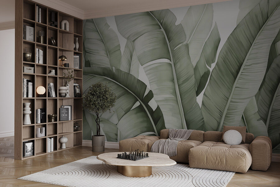 Transforme qualquer divisão num oásis sereno com este mural de folhas verdes exuberantes. Imagine-se a entrar numa tranquila escapadela tropical, mesmo em sua casa. Cada folha parece sussurrar segredos da selva, convidando-o a descontrair. É perfeito para quem procura um pouco de terapia natural sem precisar de ter um polegar verde. Imagine noites aconchegantes a beber chá, rodeado por verdes calmantes que dão vida ao seu espaço. Os tons suaves deste mural criam uma vibração refrescante, tornando-o um ótimo pano de fundo para todos os seus sonhos de decoração. Saúde para trazer uma fatia do ar livre para dentro!