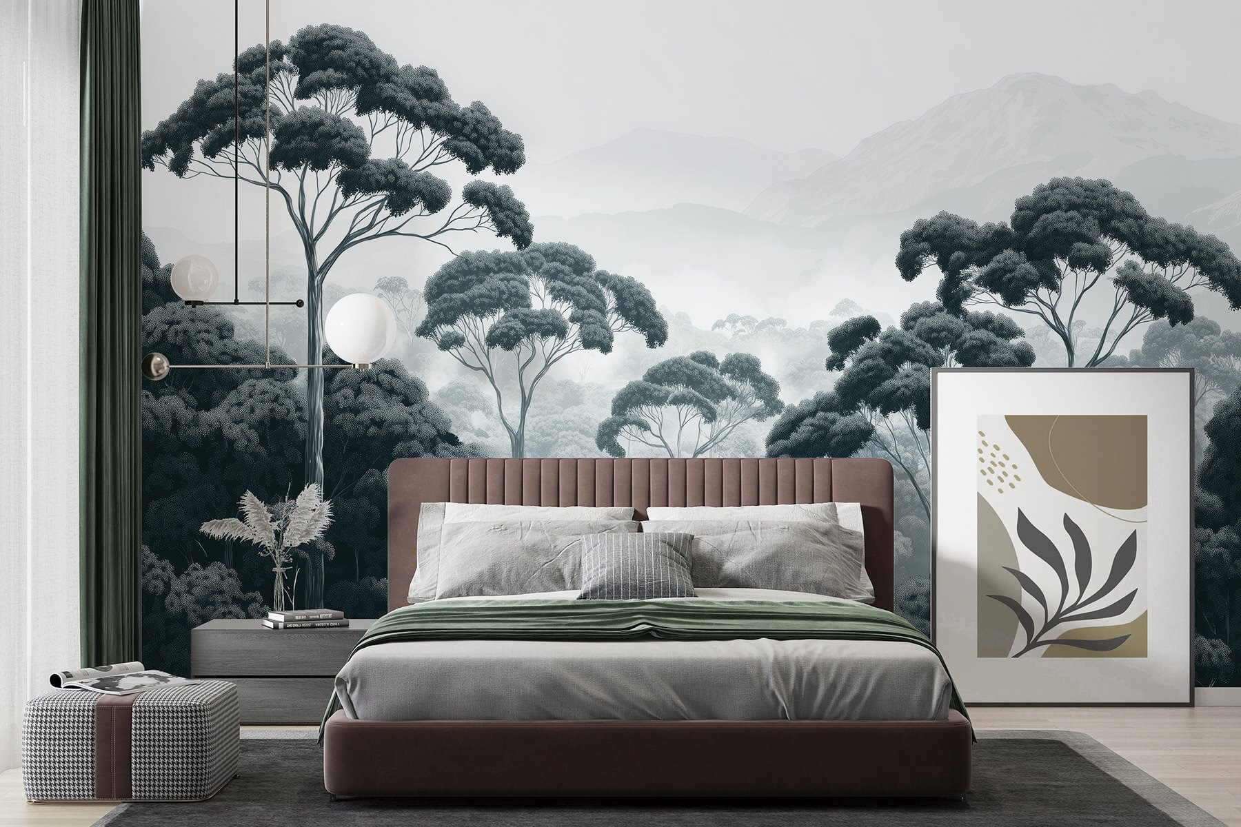 Transforme qualquer divisão numa fuga serena com este deslumbrante mural de parede que apresenta uma floresta com árvores imponentes e montanhas enevoadas. Imagine bebericar o seu café da manhã rodeado pela natureza – sem mosquitos incómodos, apenas vibrações puras! A obra de arte tem uma paleta calmante a preto e branco, perfeita para criar um espaço acolhedor e reflexivo. Quer seja numa sala de estar ou num escritório em casa, este mural pode inspirar aqueles devaneios sobre caminhadas no bosque ou enrolar-se com um bom livro. É como ter uma fatia do grande ar livre mesmo na sua parede. Quem diria que a natureza podia ser tão chique?