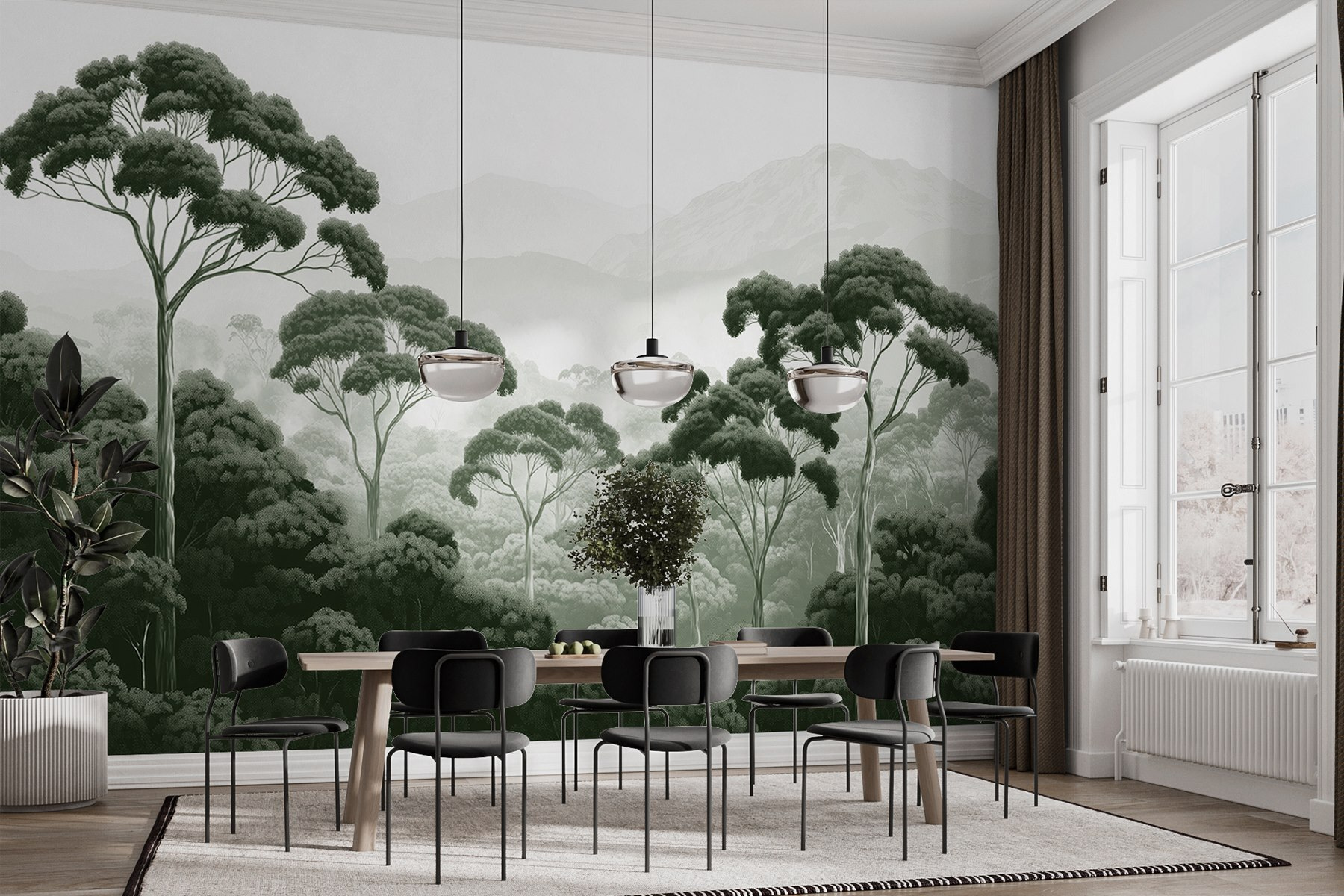 Entre numa fuga tranquila com este deslumbrante mural de parede com uma cena serena de floresta. Imagine o suave farfalhar das folhas e o sussurro de uma brisa enquanto transforma o seu espaço num refúgio inspirado na natureza. As árvores alcançam o céu, convidando a uma sensação de paz e maravilha, enquanto aquelas montanhas suaves no fundo parecem acenar-lhe para explorar mais. É como se fosse o seu próprio pedaço de natureza selvagem, sem os insectos do exterior – não é fantástico? Perfeito para salas de estar acolhedoras ou quartos calmantes, este mural fará com que cada olhar seja uma mini-fuga para a floresta.