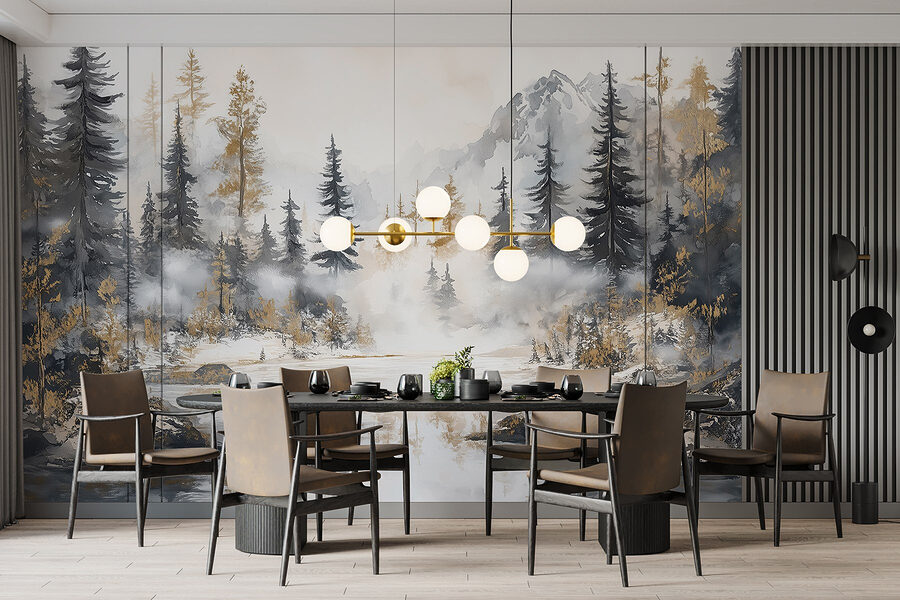 Transforme o seu espaço numa fuga serena com este deslumbrante mural de aguarela de uma floresta e montanhas. É como trazer a calma da natureza para dentro de casa, sem as picadas de insectos e os sapatos enlameados. Imagine noites aconchegantes passadas junto à “lareira” (ou apenas uma vela bruxuleante) enquanto contempla as árvores enevoadas e os picos imponentes – quem precisa de uma bota de caminhada quando tem esta beleza na parede? Perfeito para uma sala de estar ou para um recanto de leitura tranquilo, este mural sussurra relaxamento. É um lembrete artístico para respirar fundo e deixar a natureza fazer a sua magia, mesmo em sua casa.
