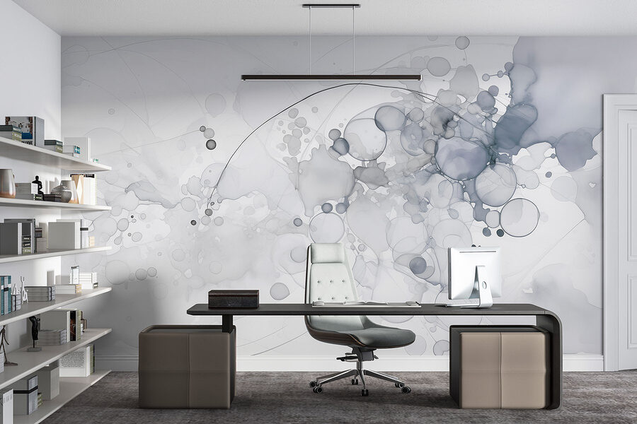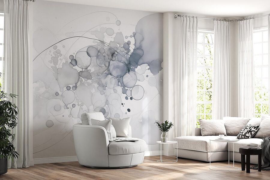 Transforme o seu espaço com “Murais de parede Formas abstractas em tons suaves”. Este deslumbrante mural traz uma suave dança de cores diretamente para as suas paredes, sussurrando sofisticação sem chamar a atenção. Imagine entrar numa sala onde os azuis e cinzentos suaves rodopiam juntos, criando o tipo de vibração calmante que até o seu gato pode apreciar durante a sua rotina diária de sesta.